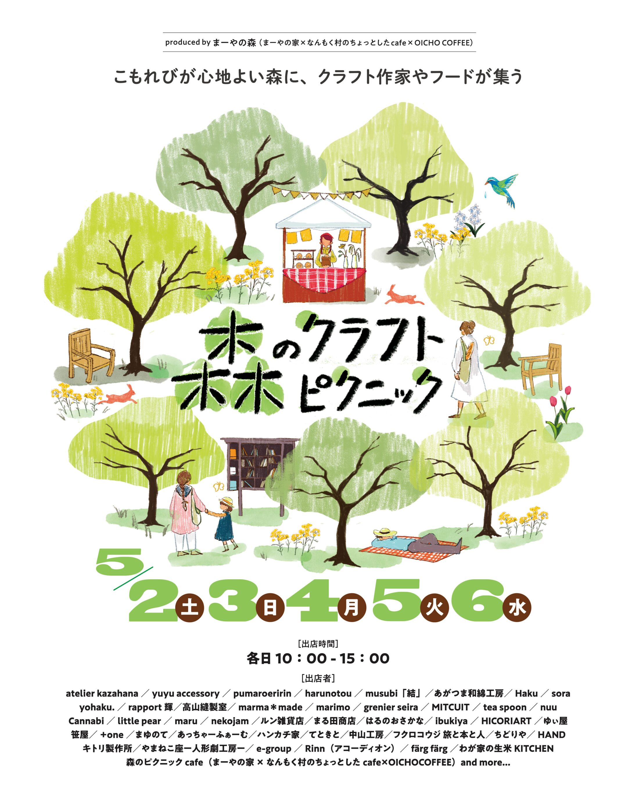 若葉フェア期間中の5/2~6の5日間、こもれびの心地よいリラックスの森に、丁寧な手作りの「クラフト」の出店が40店舗以上集います。 会場は中之条ガーデンズ内の木漏れ日が心地よい「リラックスの森」。 …