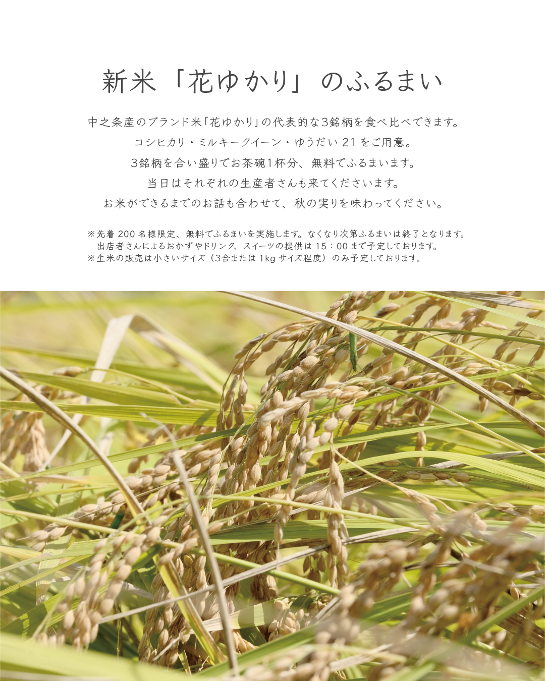 今年も実った新米に感謝を込めて、無料でお茶碗1杯分をふるまいます。