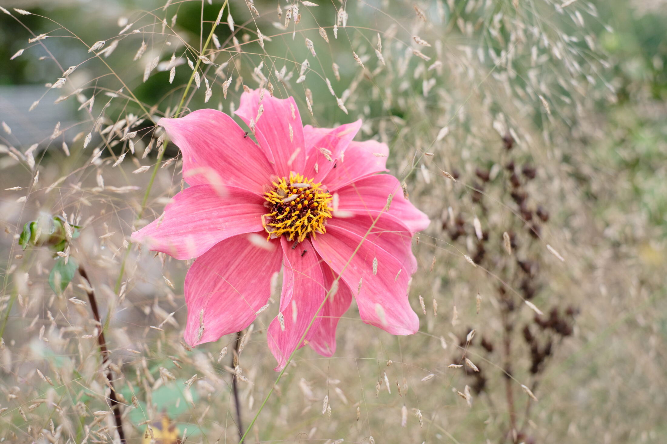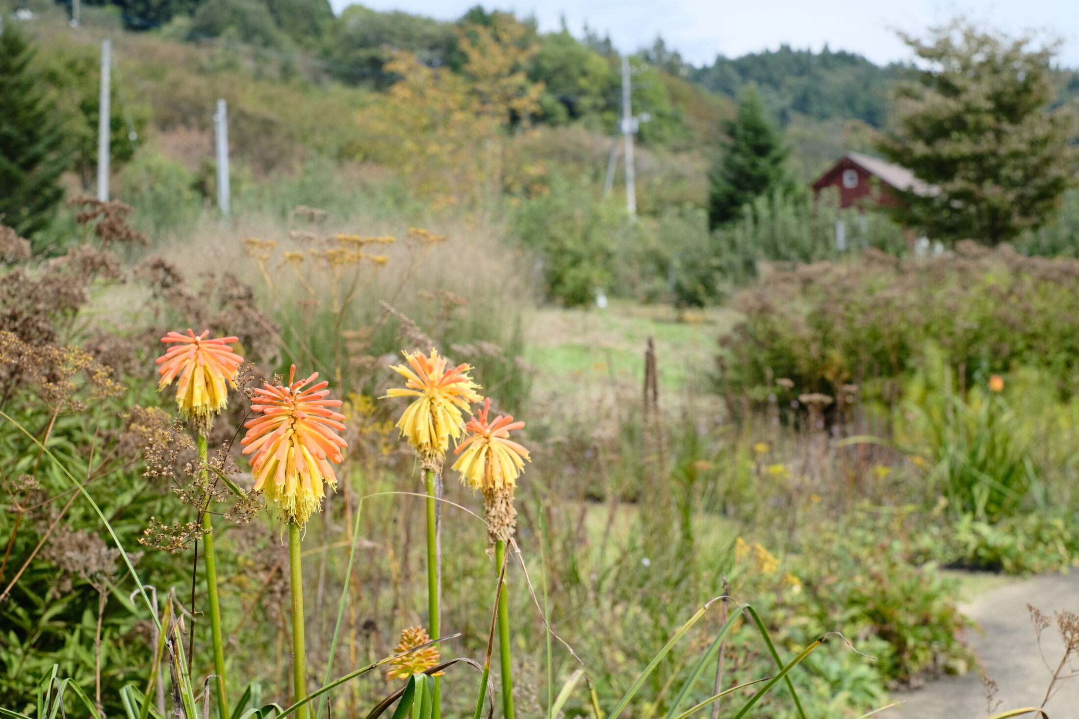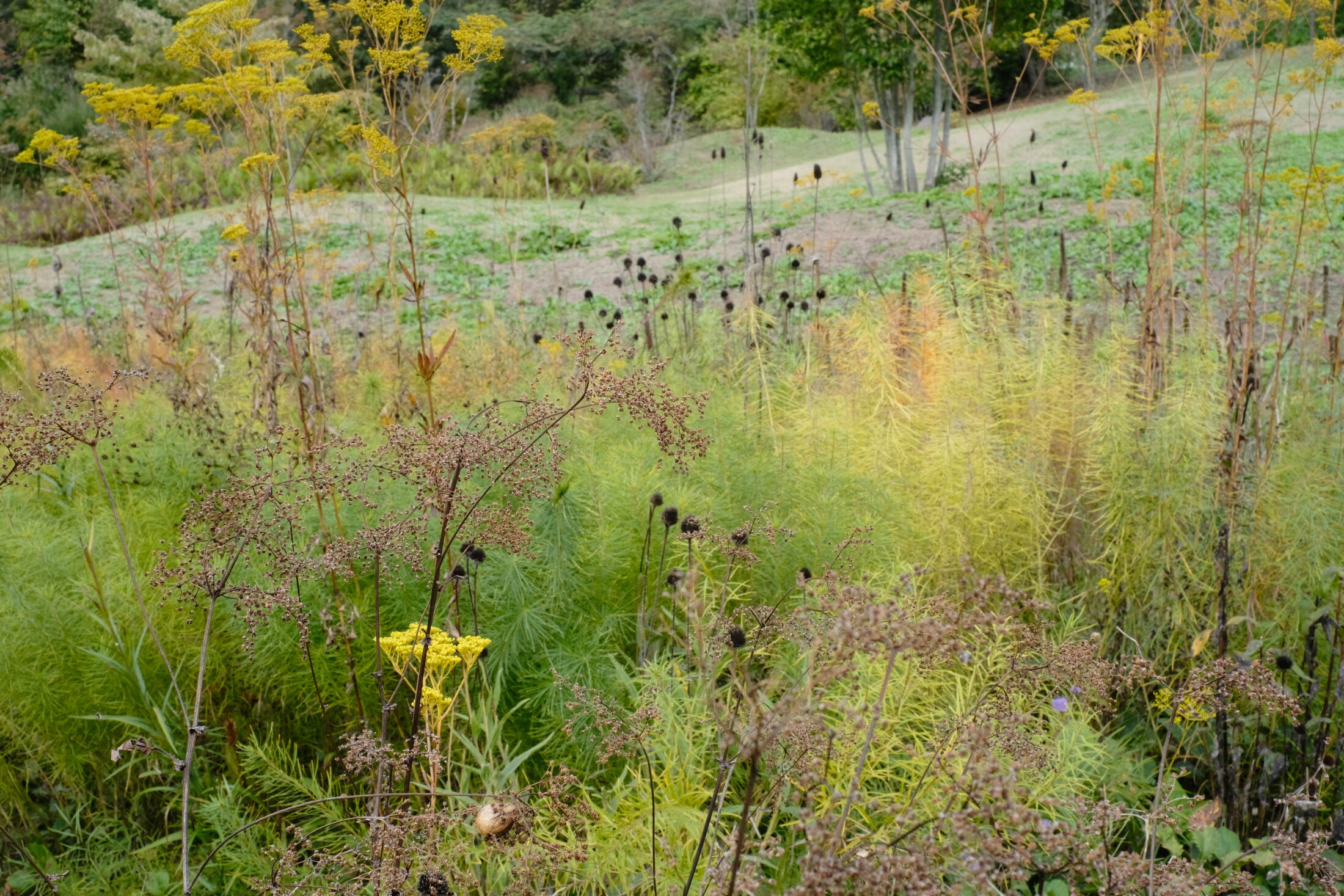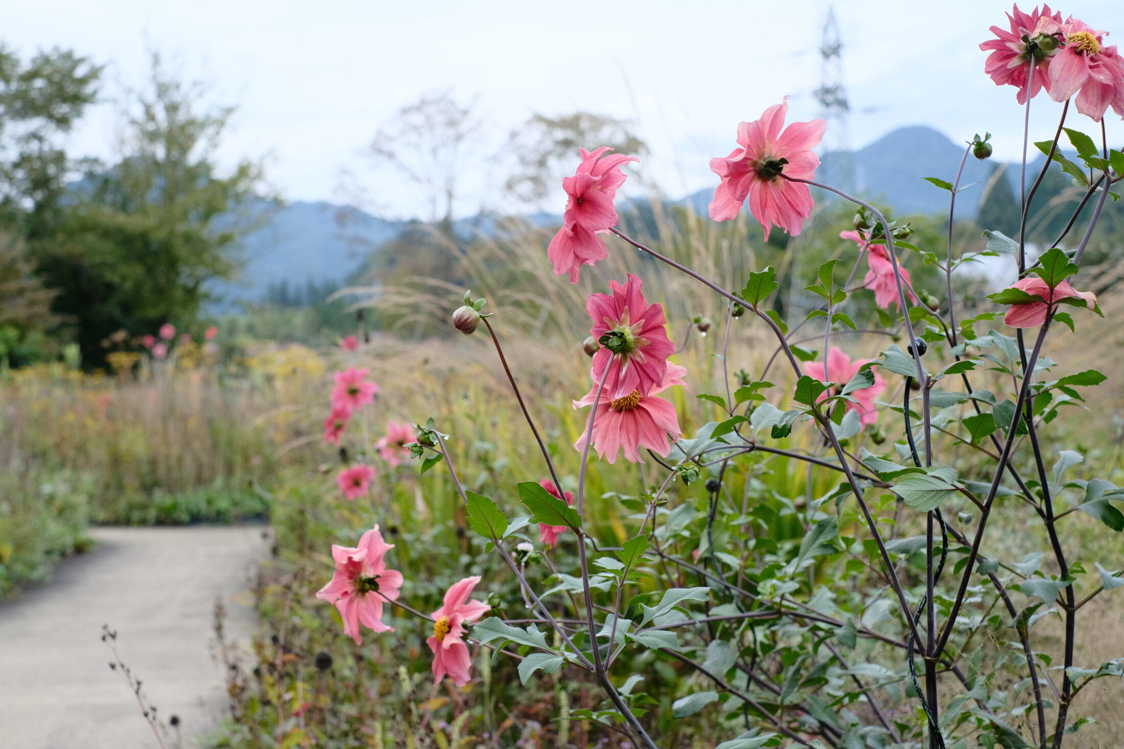 続いてはメドウパス。コスモスをはじめ、自生している野の花や、寄り添うように植栽された宿根草類のバランスが心地よいです。