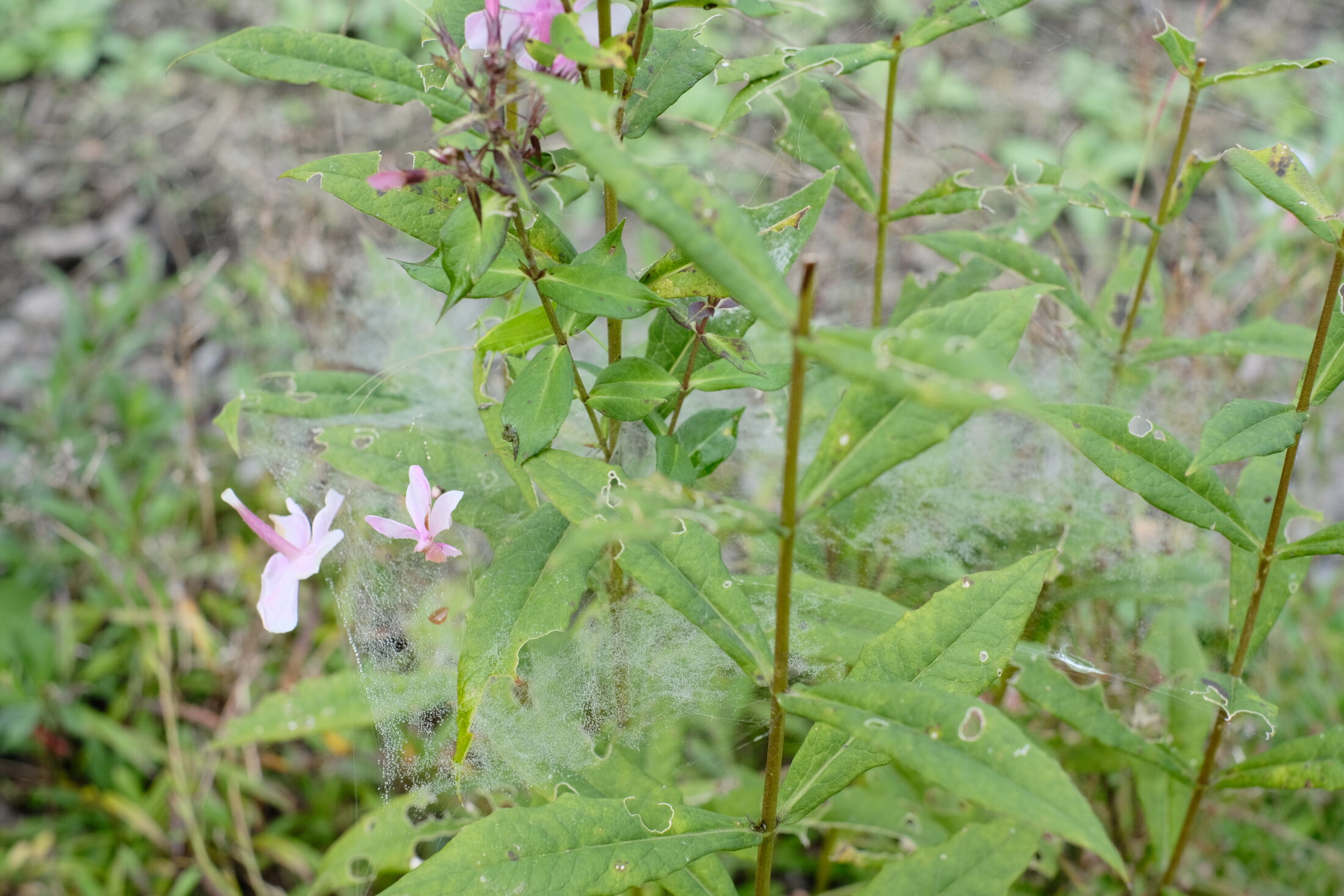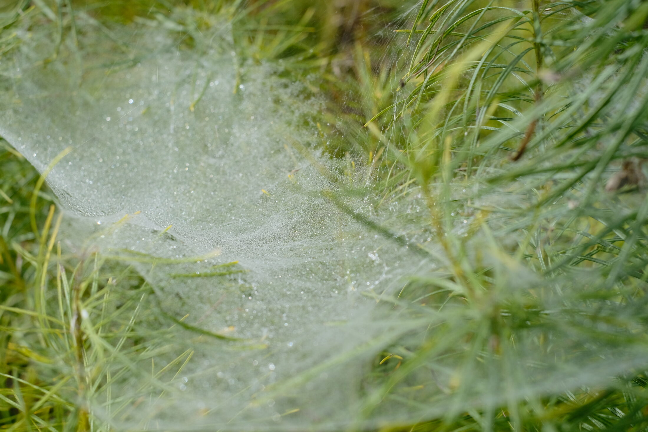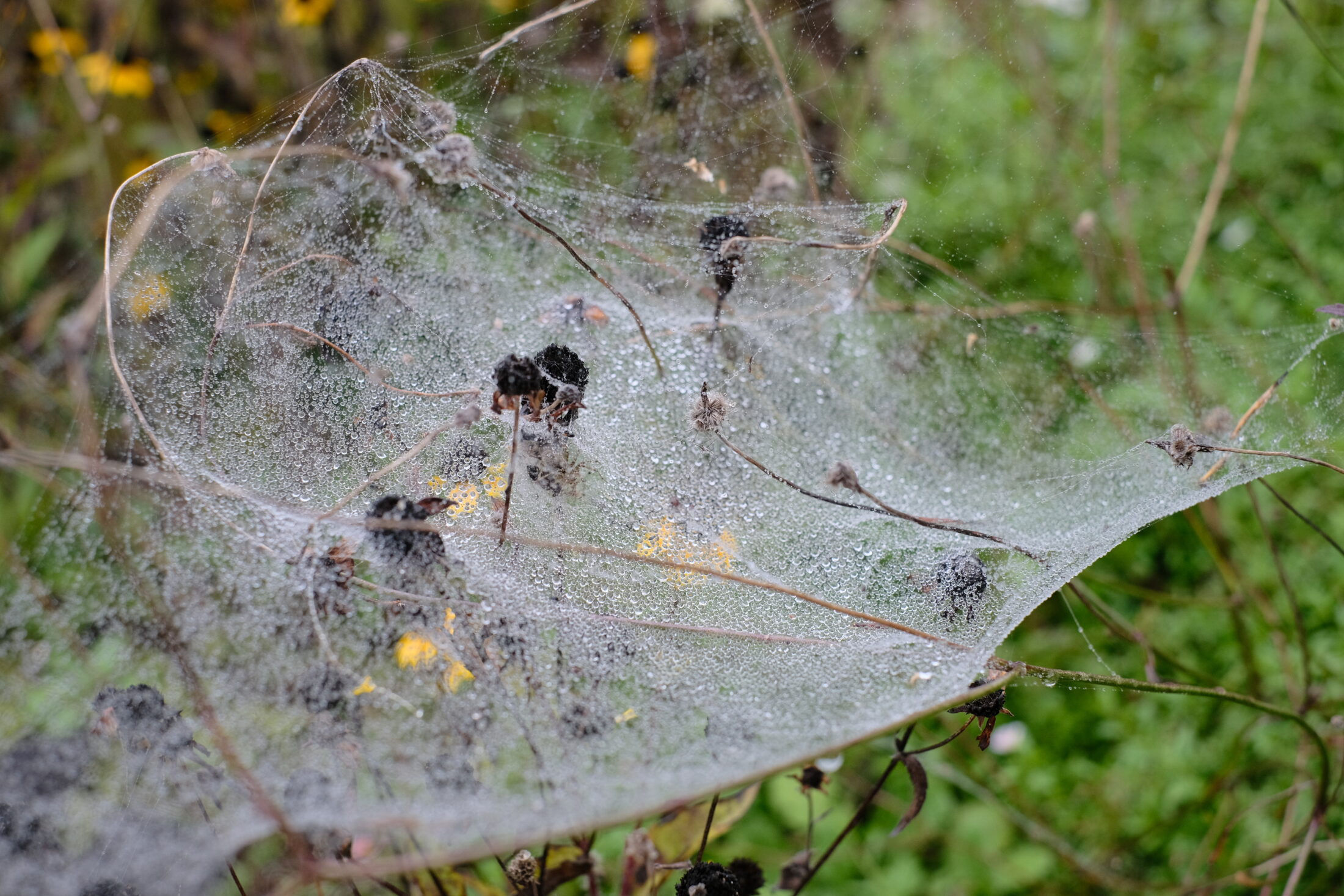 スパイラルガーデンのシードヘッドに張られたクモの巣が繊細で見飽きないです。