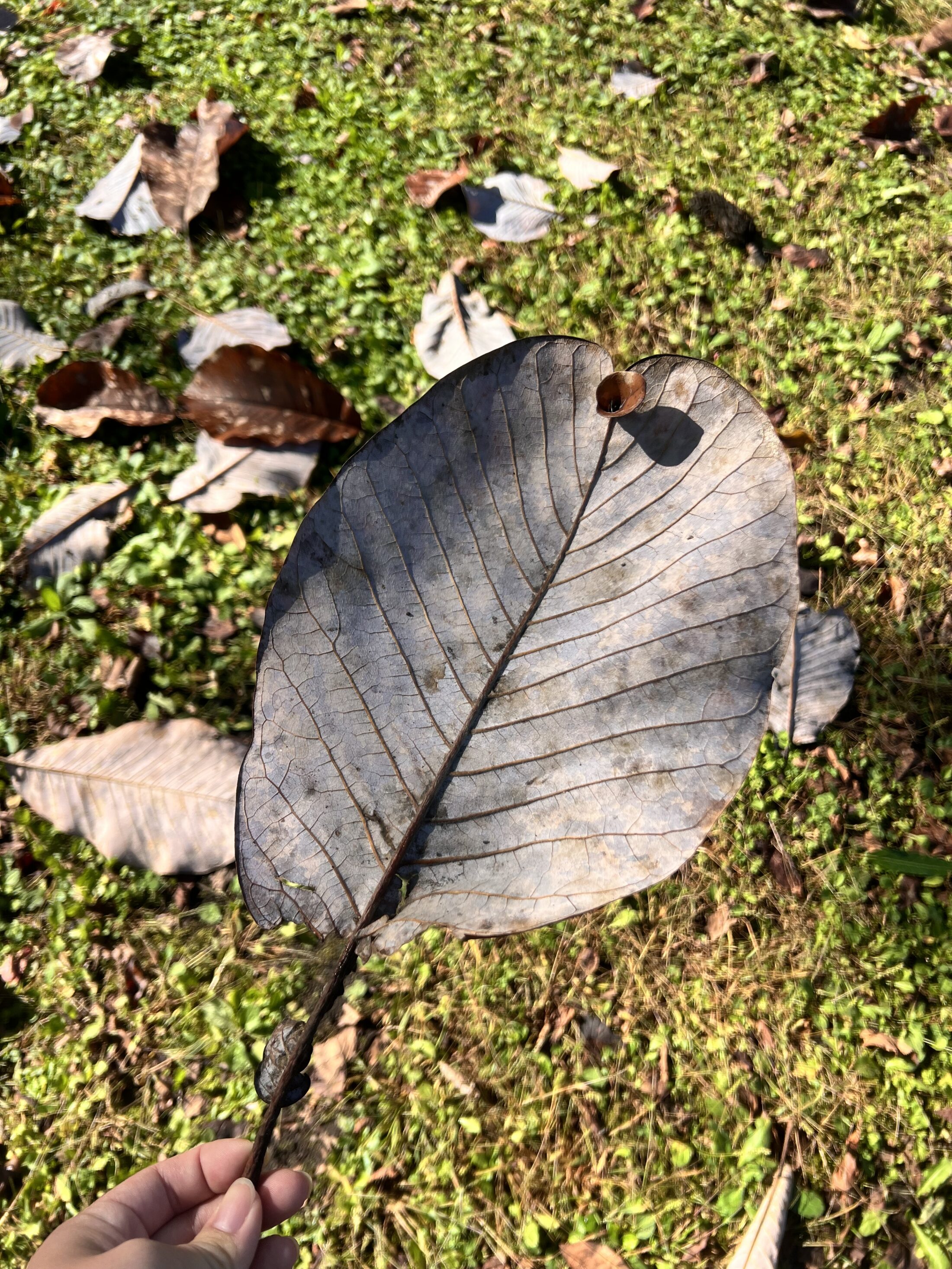 ホオノキの大きな葉っぱは思わず拾いたくなりますね。