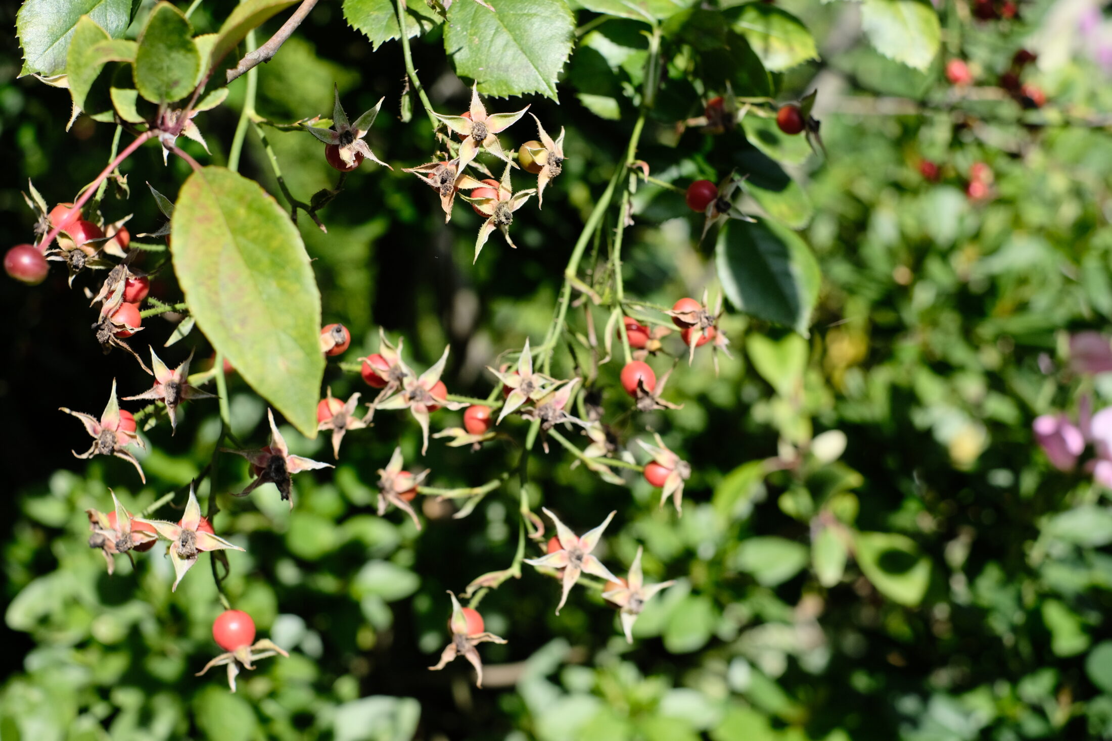 ローズヒップも色づいてきました。