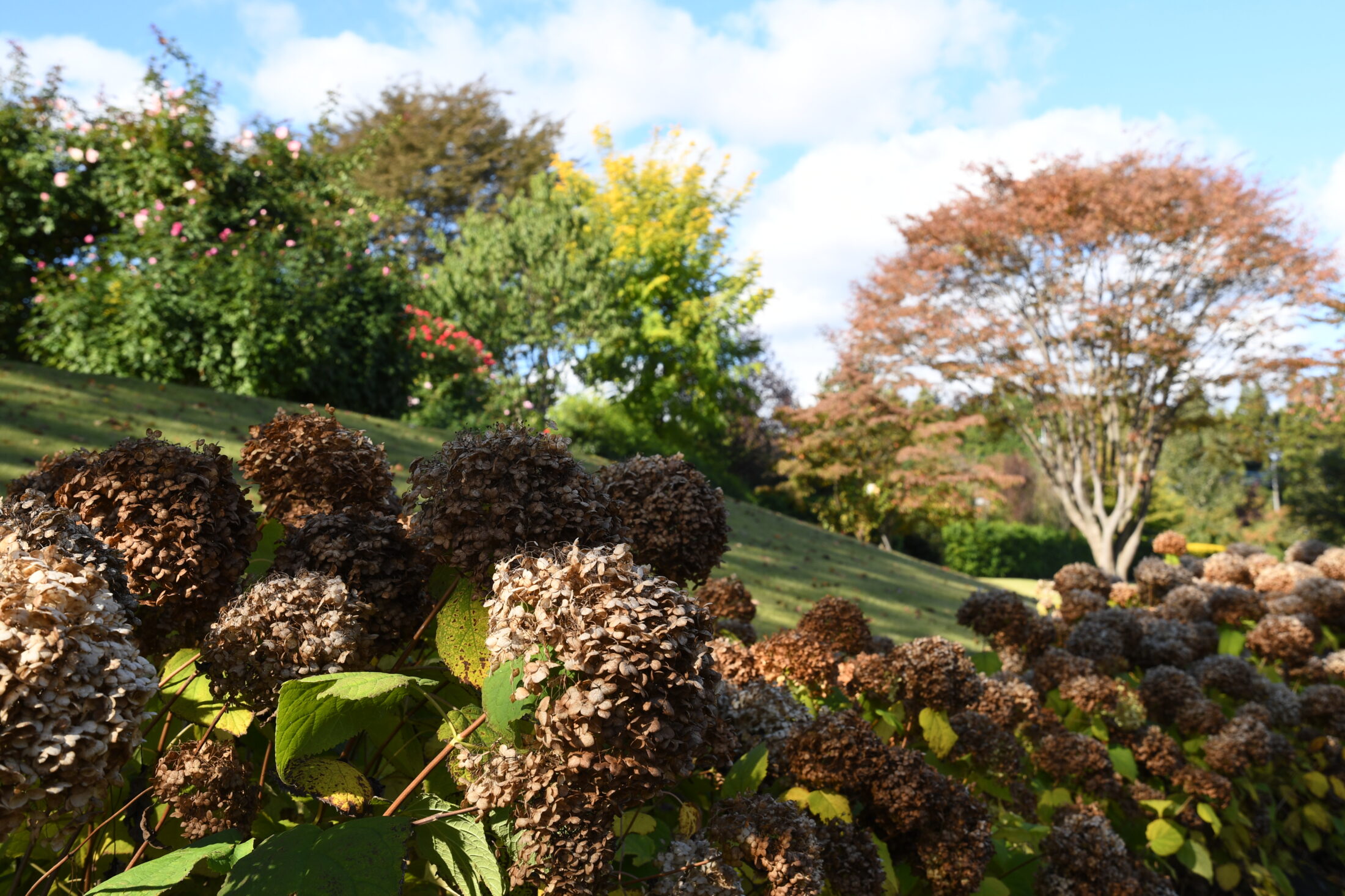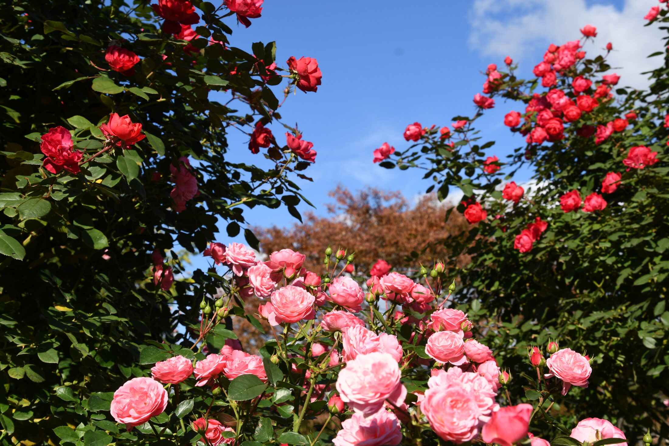 ローズガーデンは来春に向けた植栽作業がおこなわれていますが、まだまだ秋のバラやローズヒップ、誘引など見どころがあります。