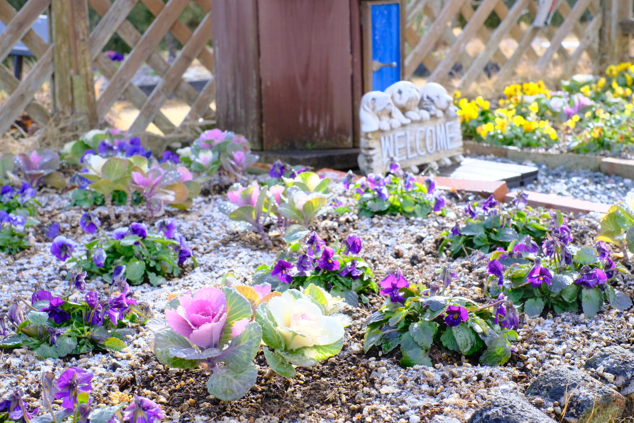 アンティークな中でも彩りを感じられるのが町民花壇。