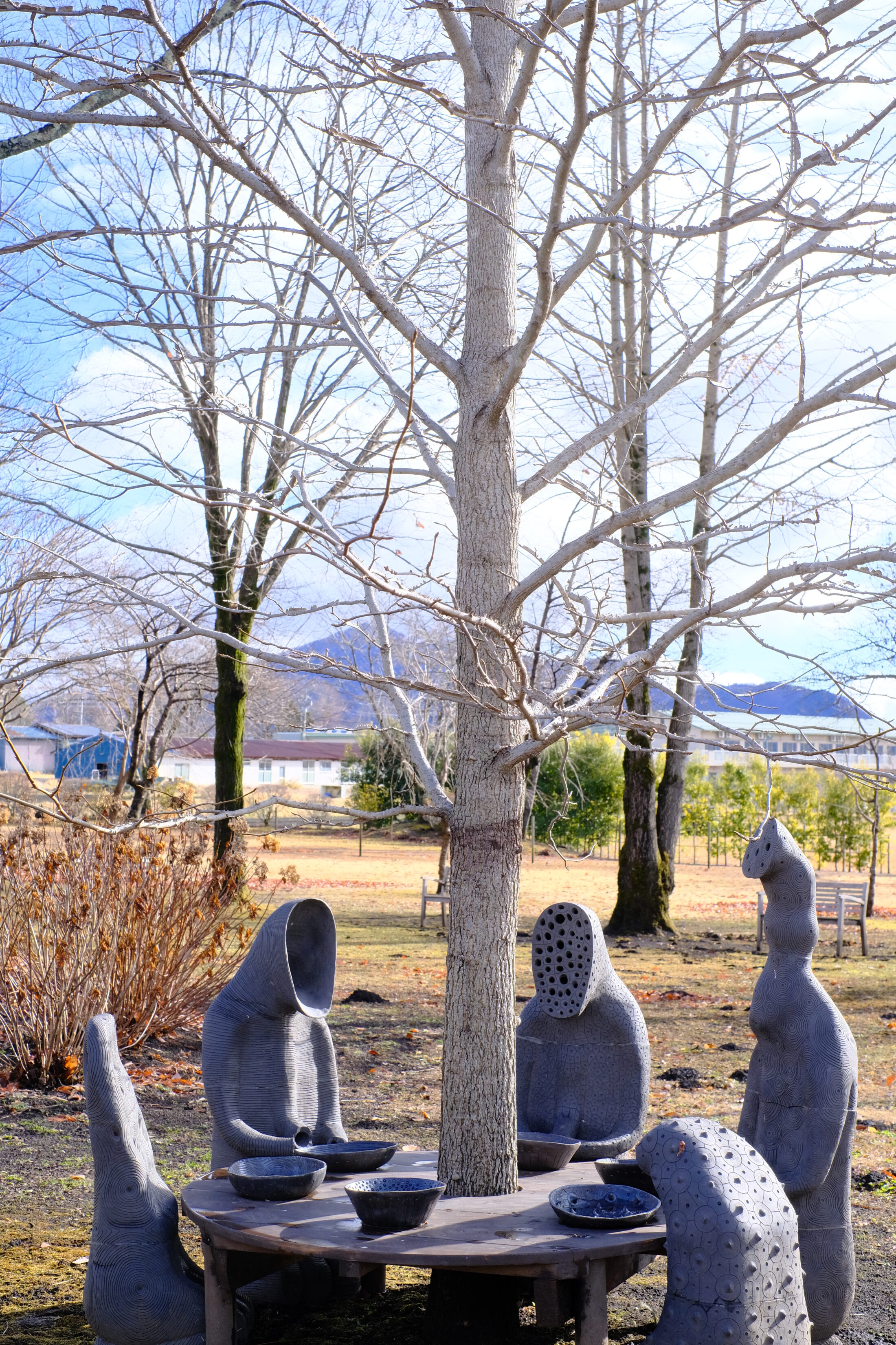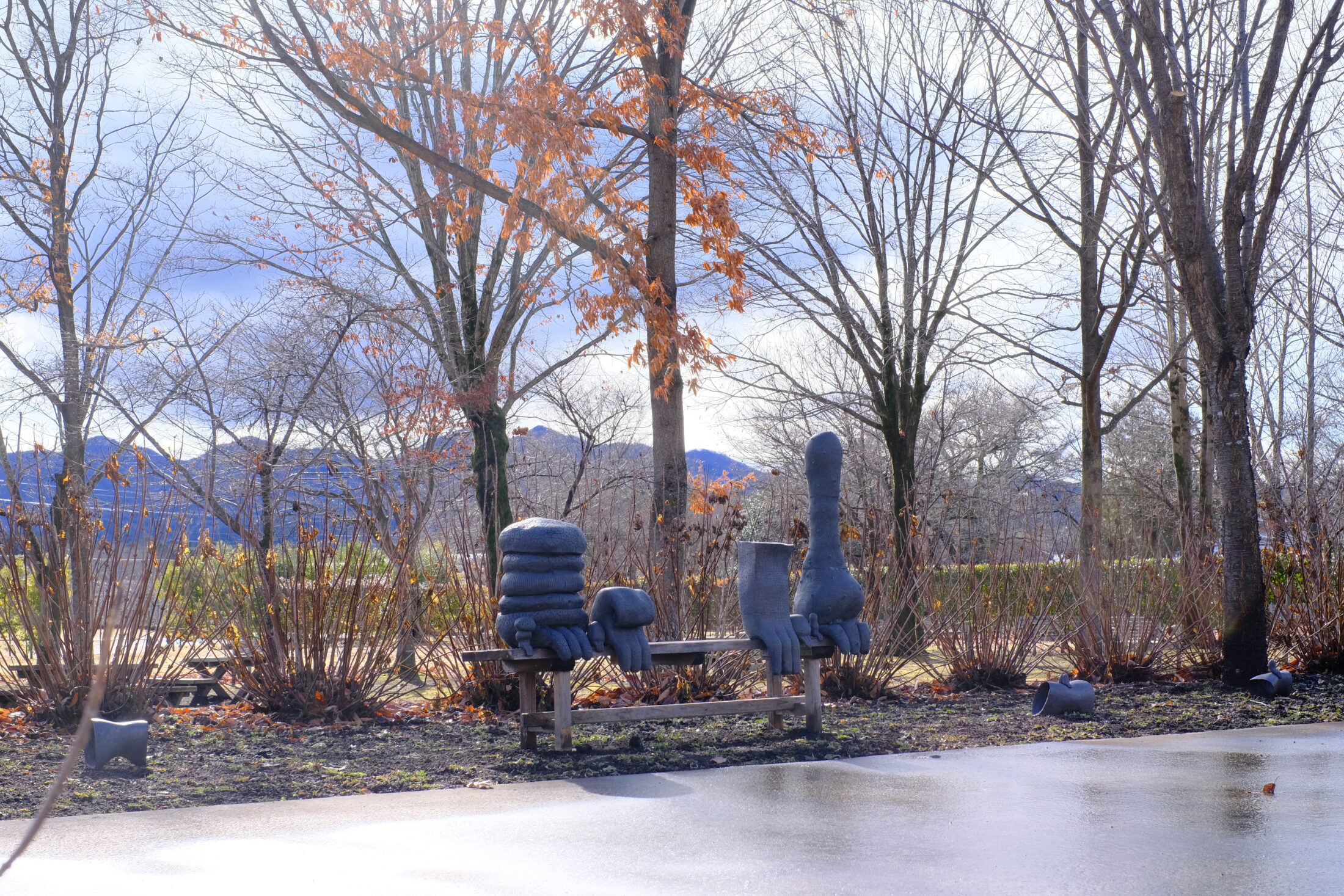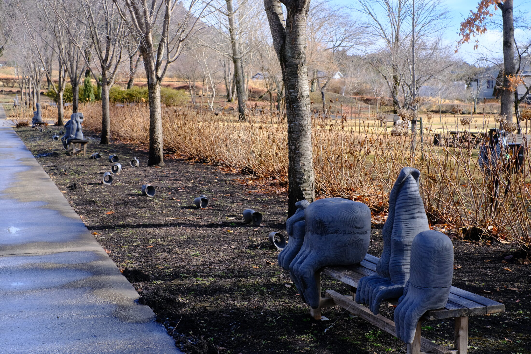 ふるさとの野山やリラックスの森周辺では、冬バージョンの特別展示でトリックスターたちもご覧いただけます。