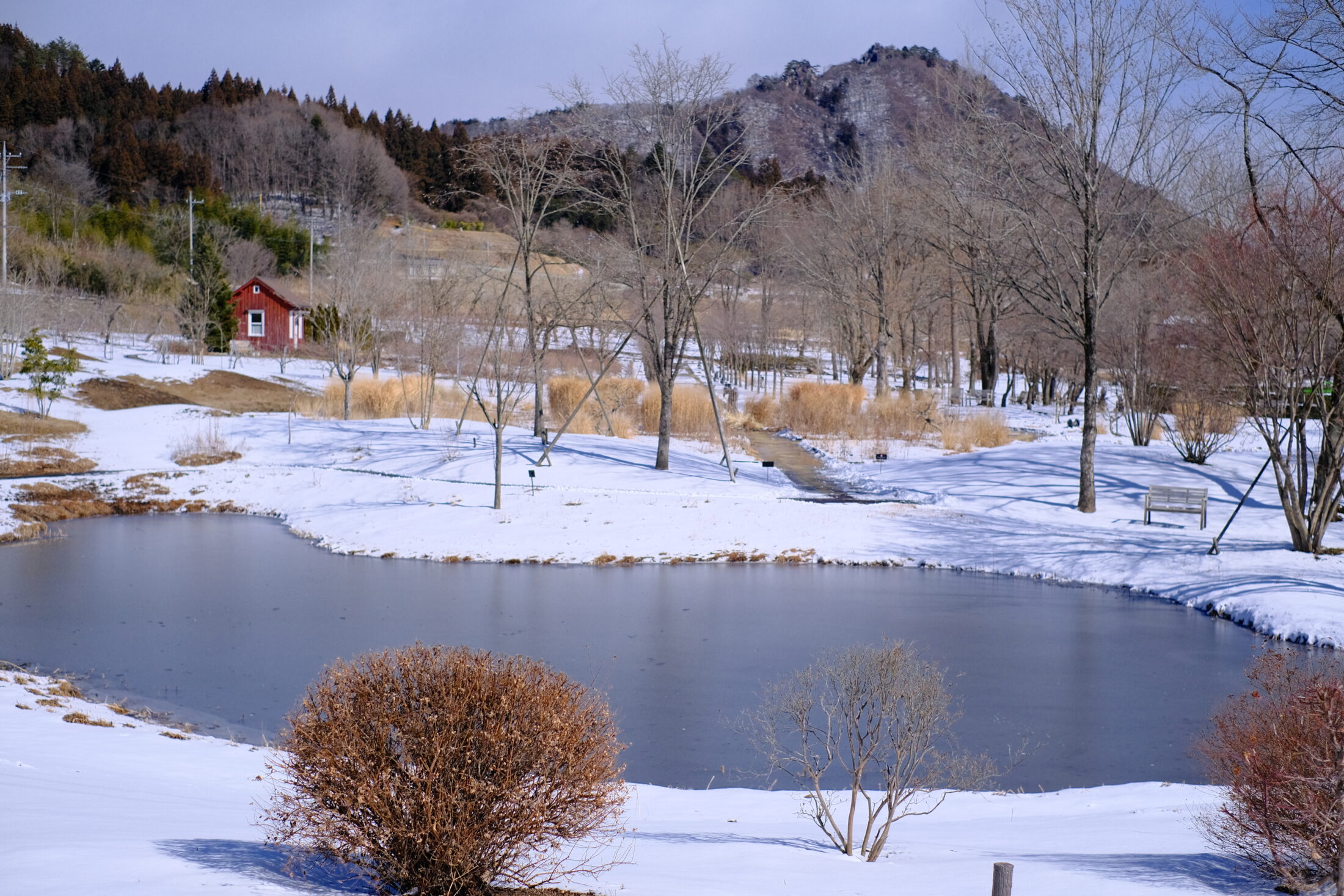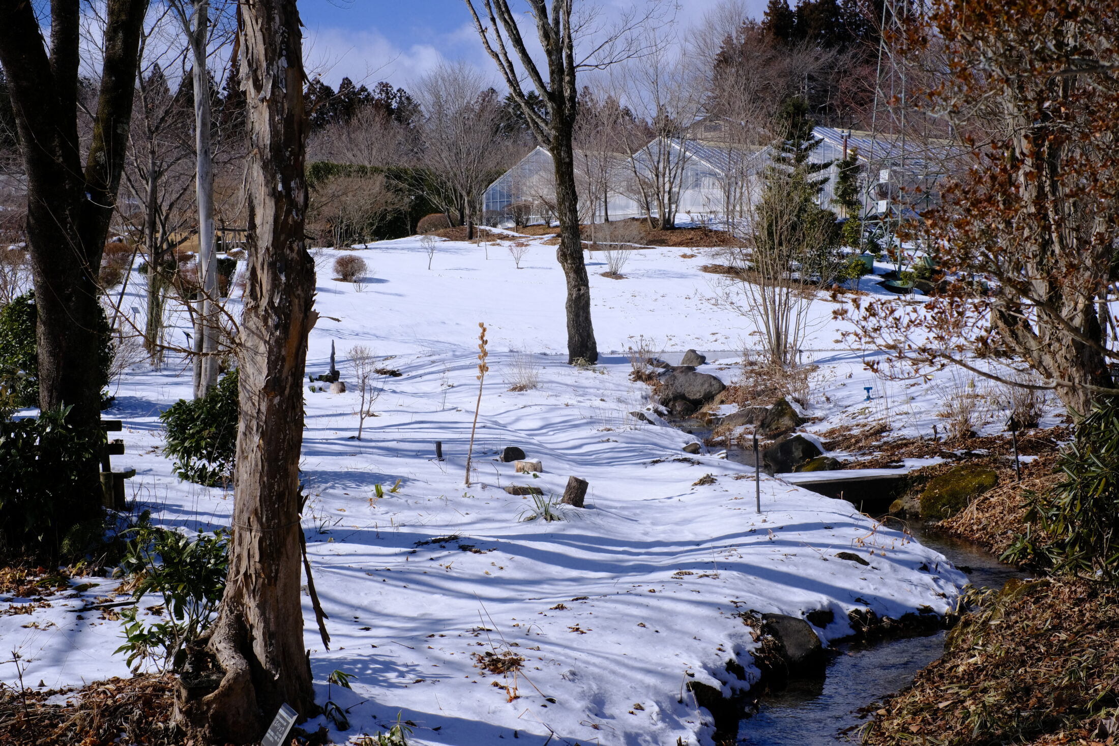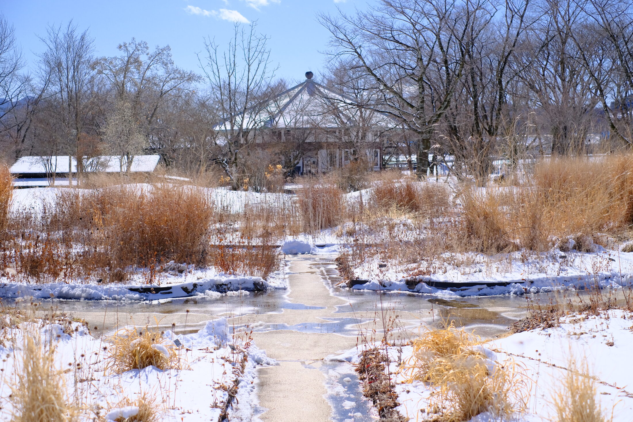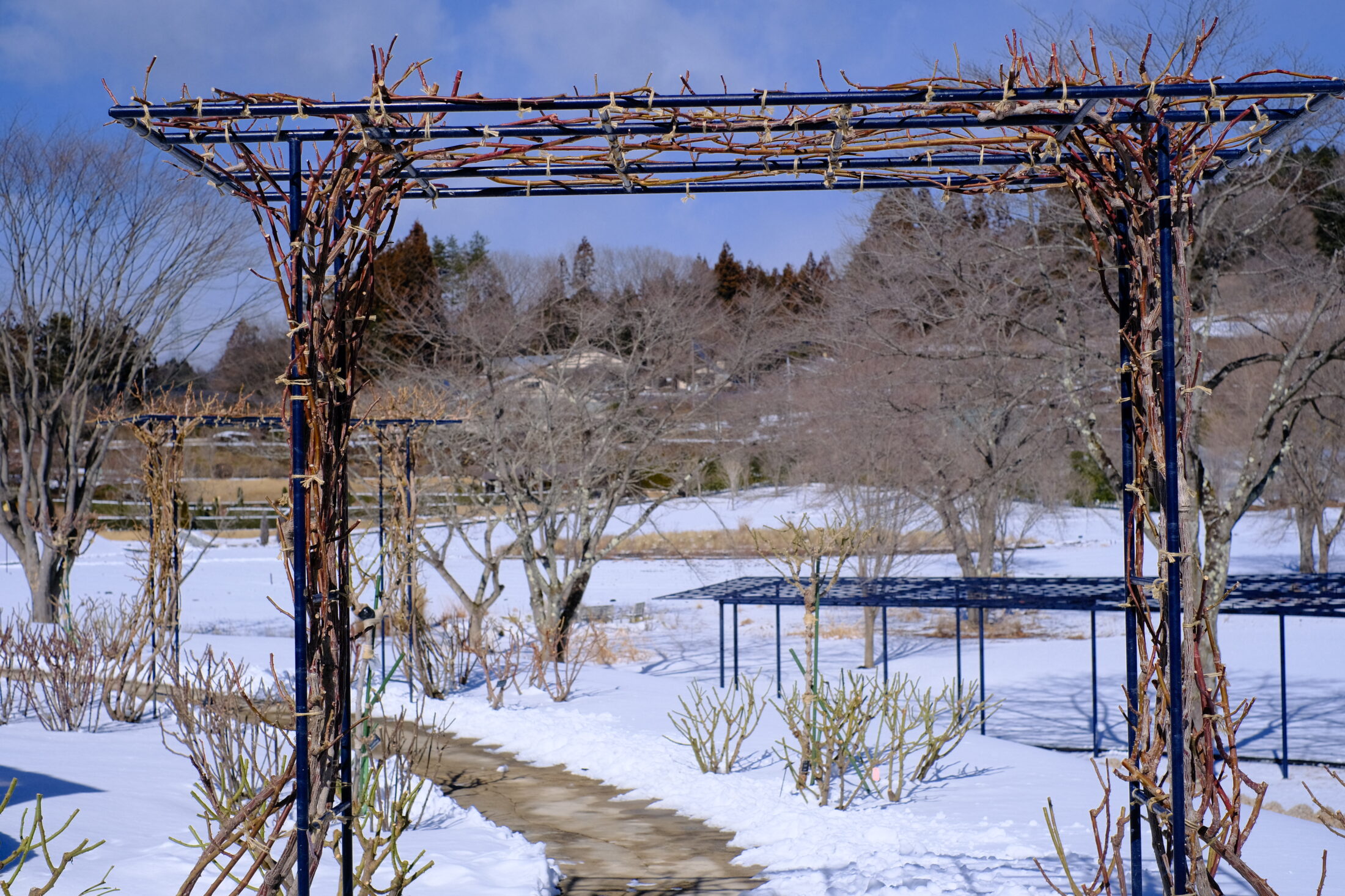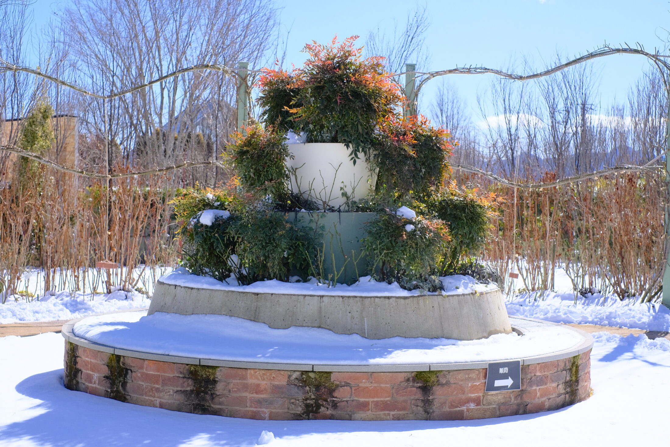 園内は白く雪で彩られています。