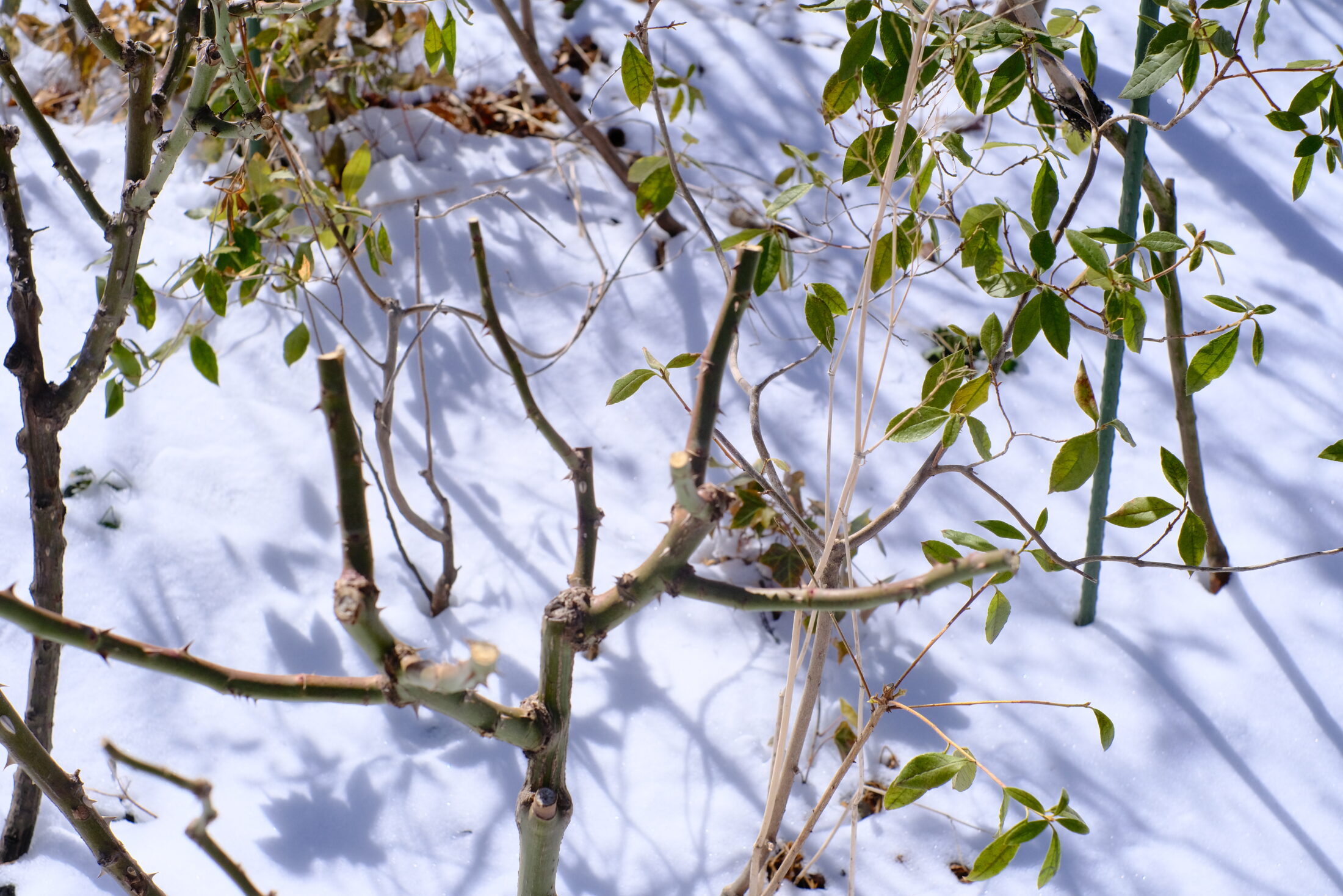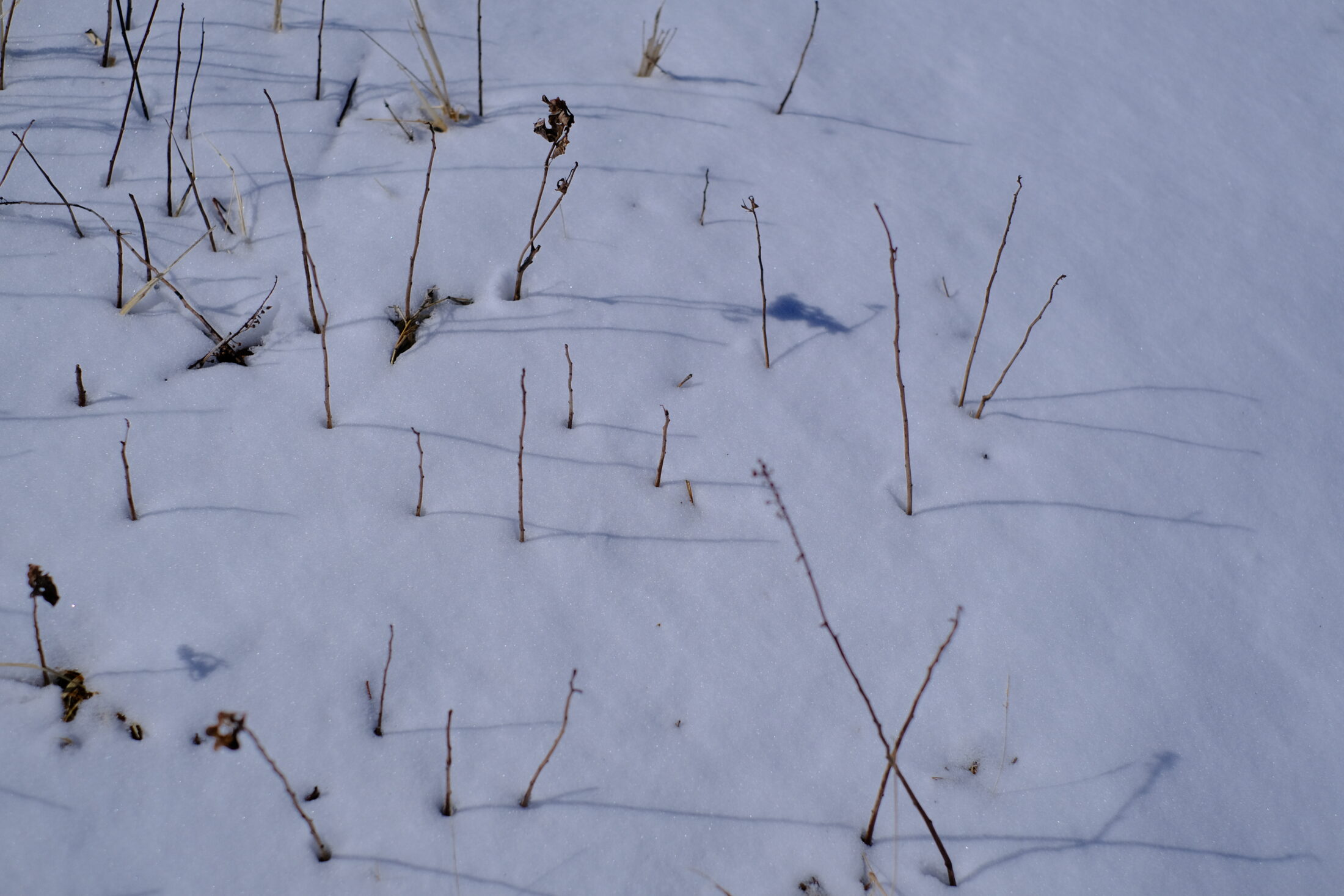 晴天で日差しは暖かく、溶けるのは早そう。じっと寒さの中にいる草花たちに雪解け水が染み渡ることでしょう。