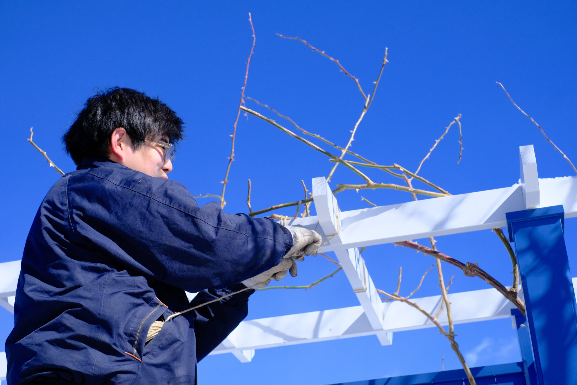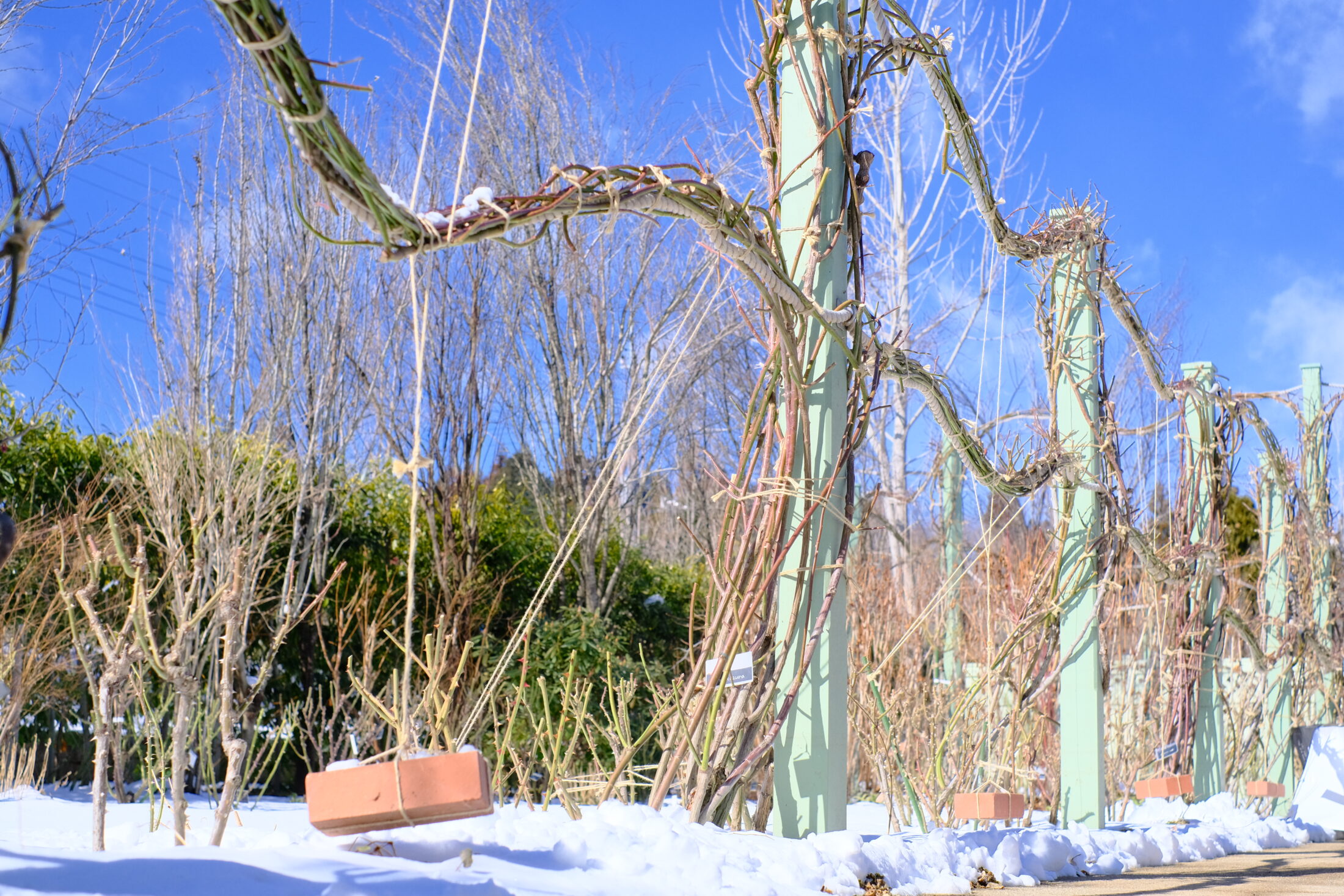 ローズガーデンでは、寒い中ですが冬剪定が続いています。
