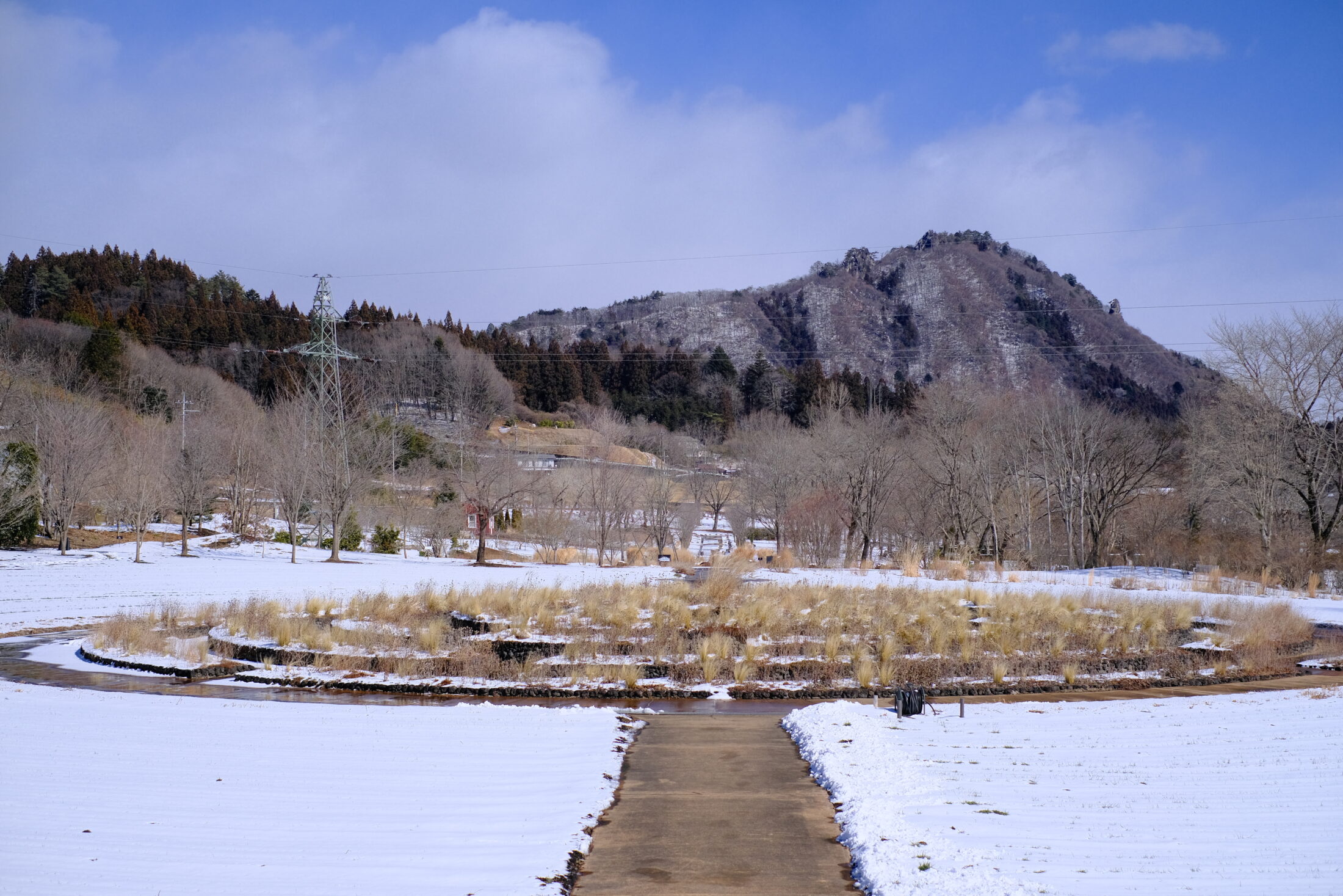 スパイラルフィールド越しの嵩山も雪化粧の貫録をまとって力強い。
