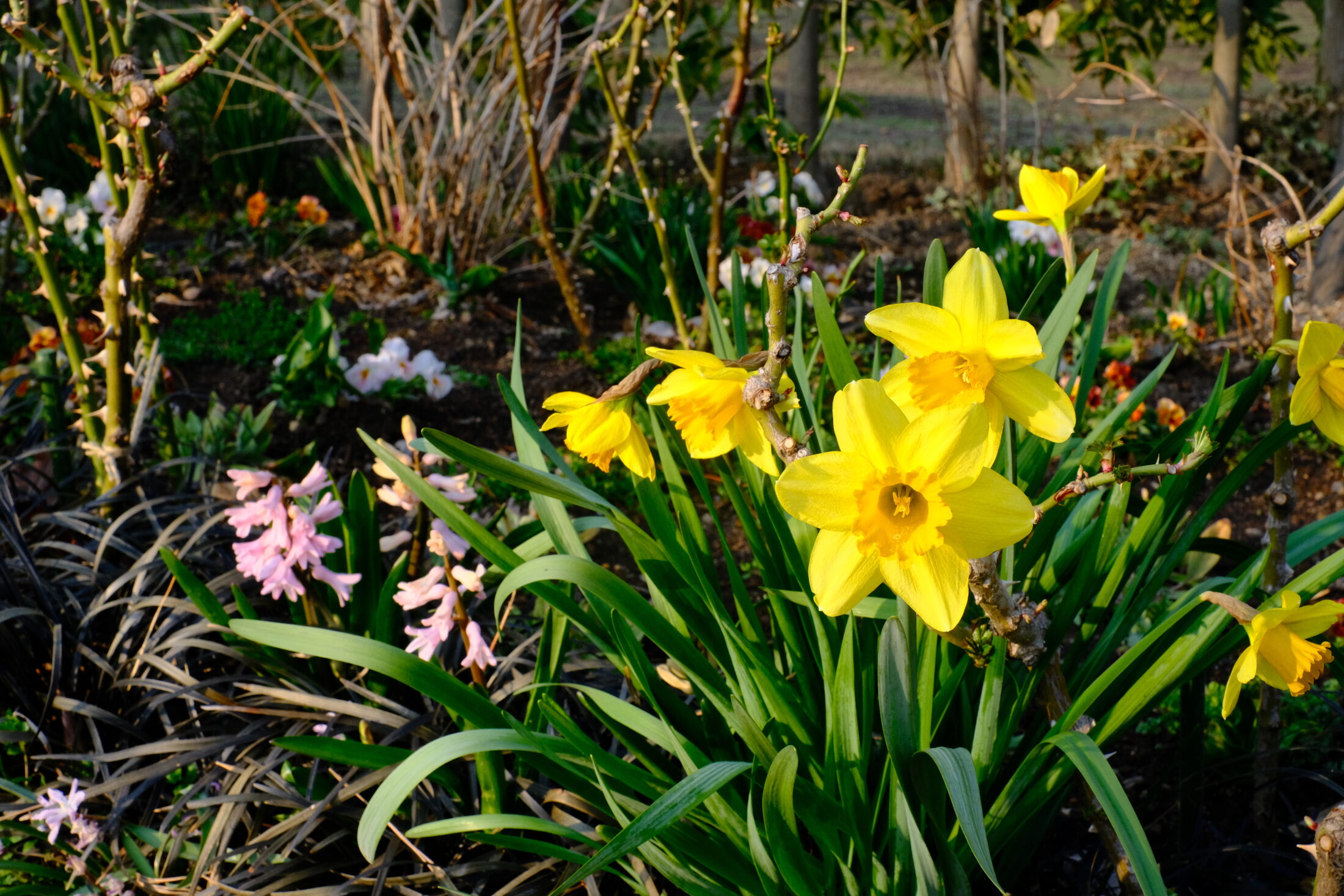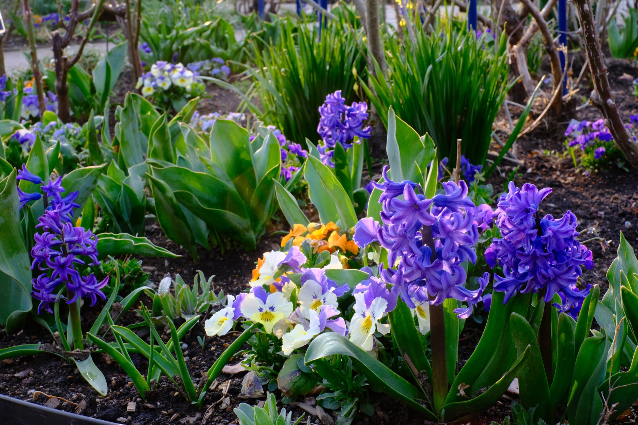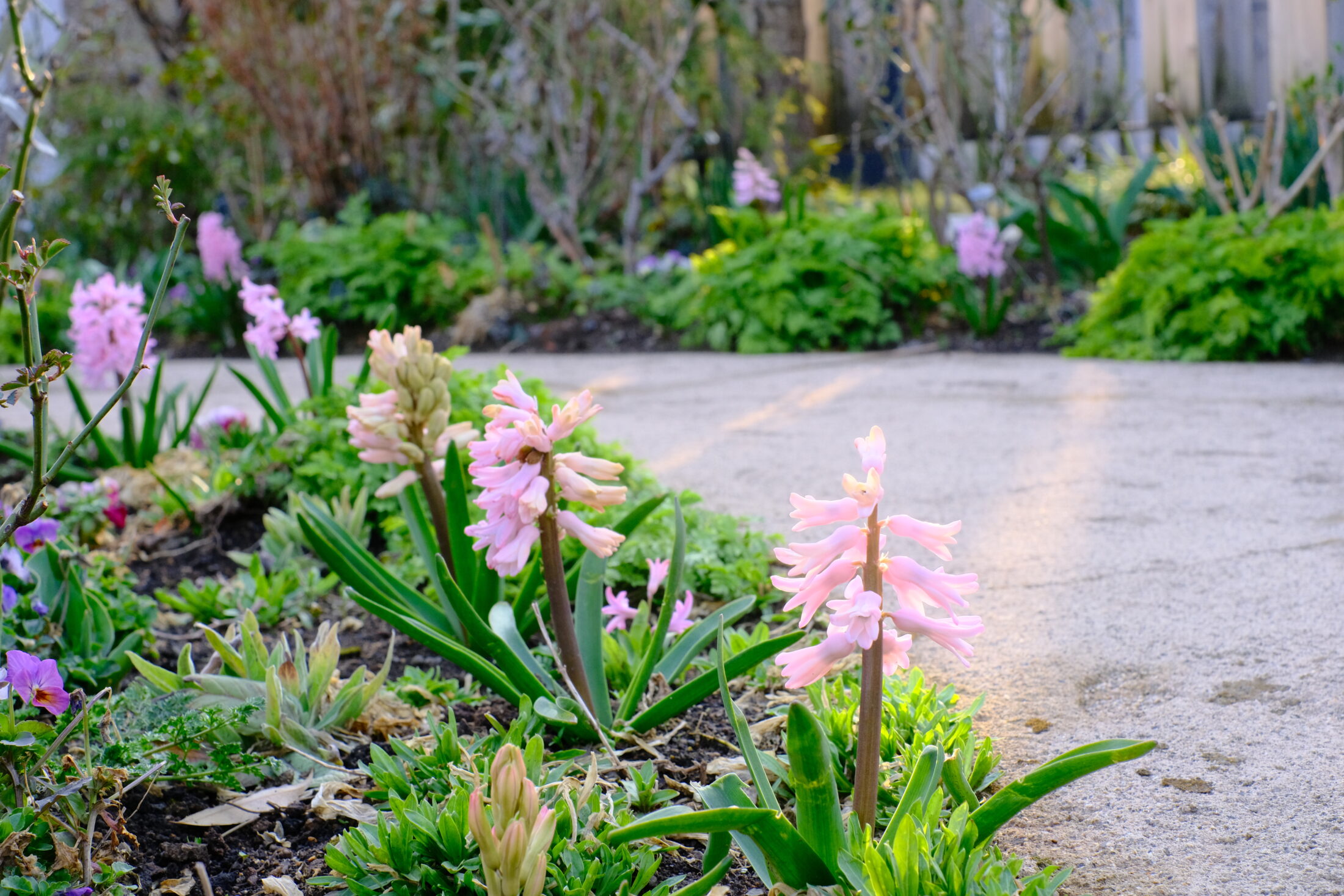 ローズガーデンではヒヤシンスやビオラが開花しています。