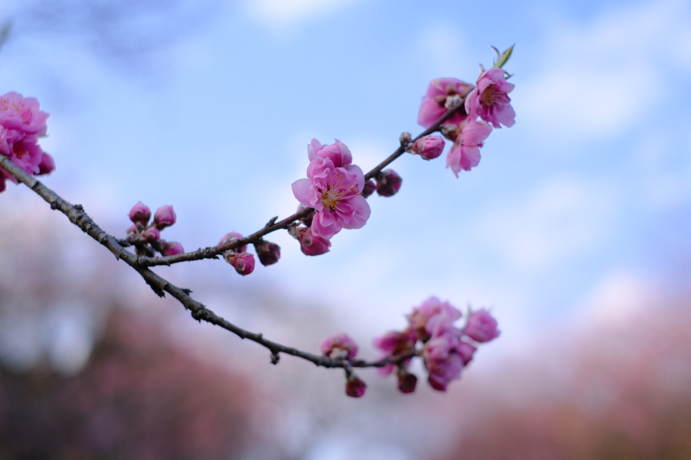 朝は1割ほどだった花桃も、夕方には2割程度の開花に。