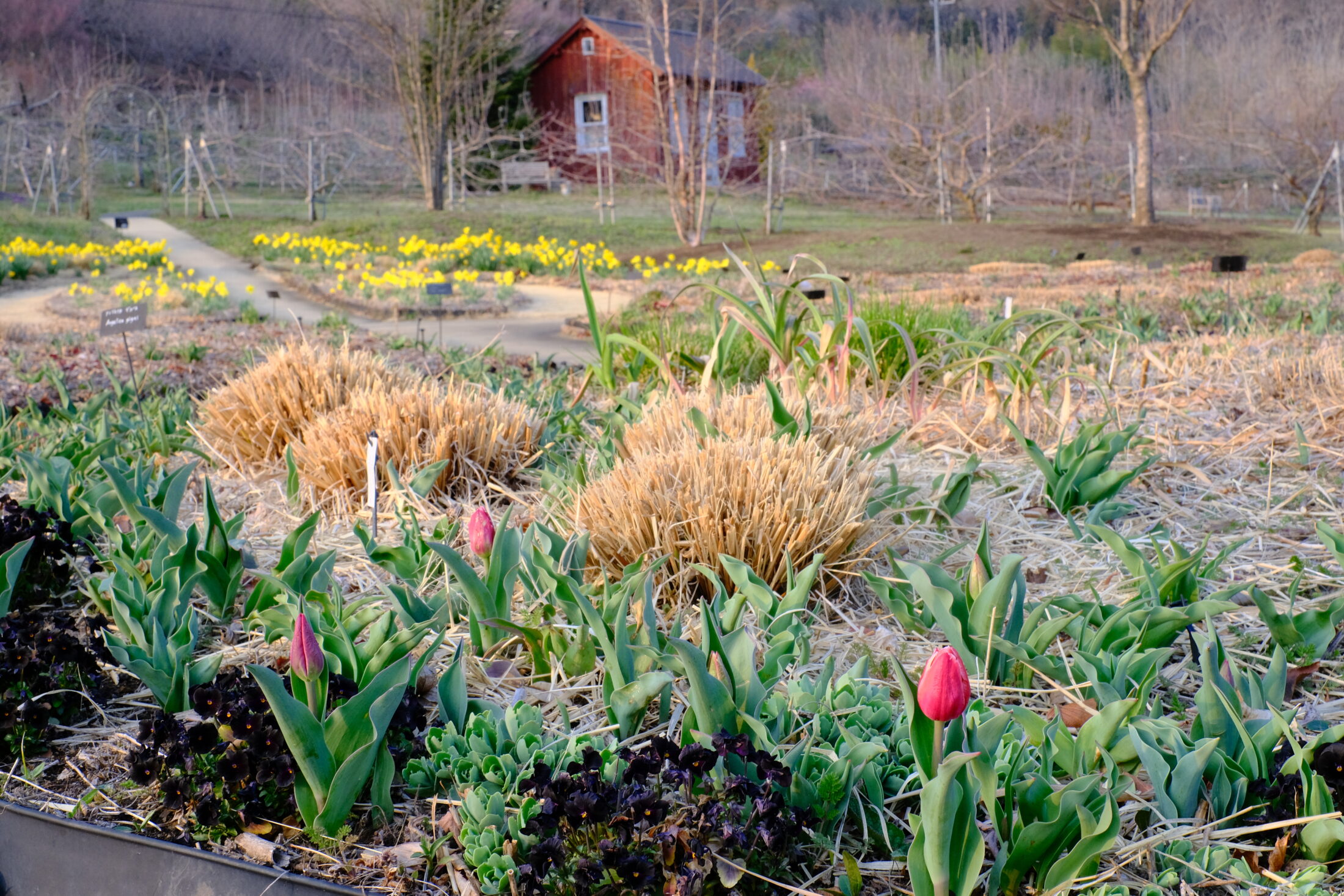 ナチュラルガーデンではスイセンやクリスマスローズが見頃です。チューリップも咲き始めました。