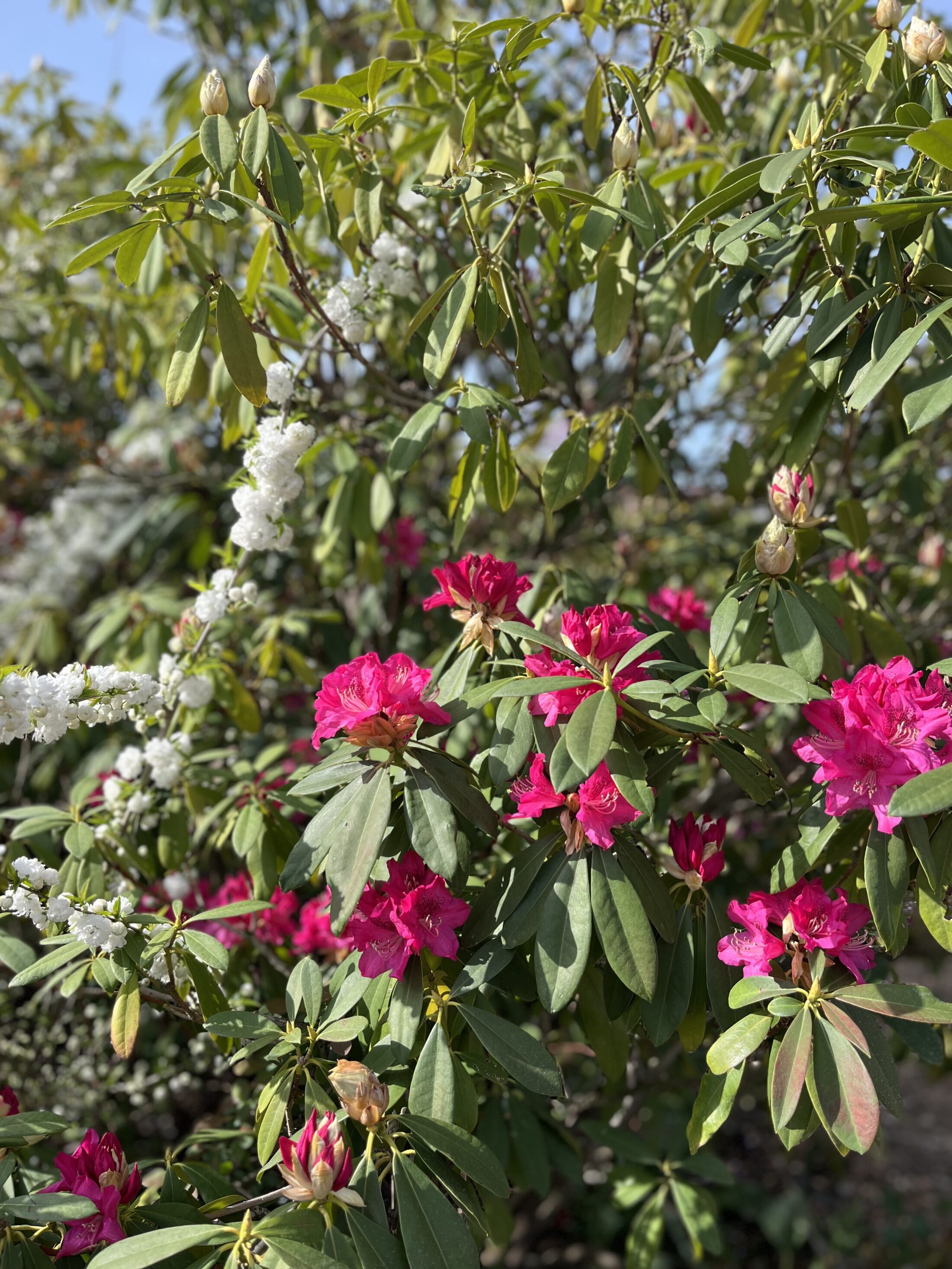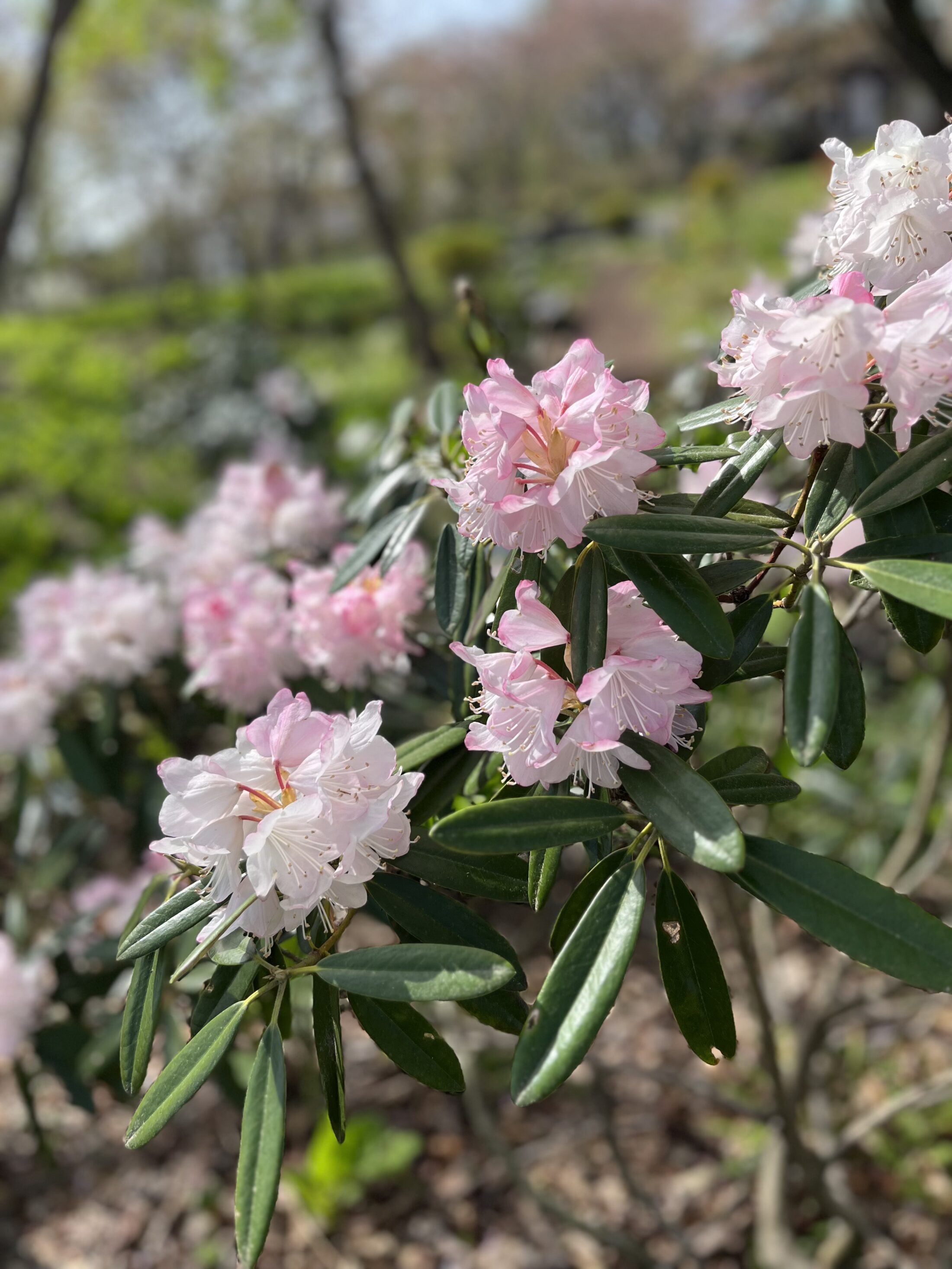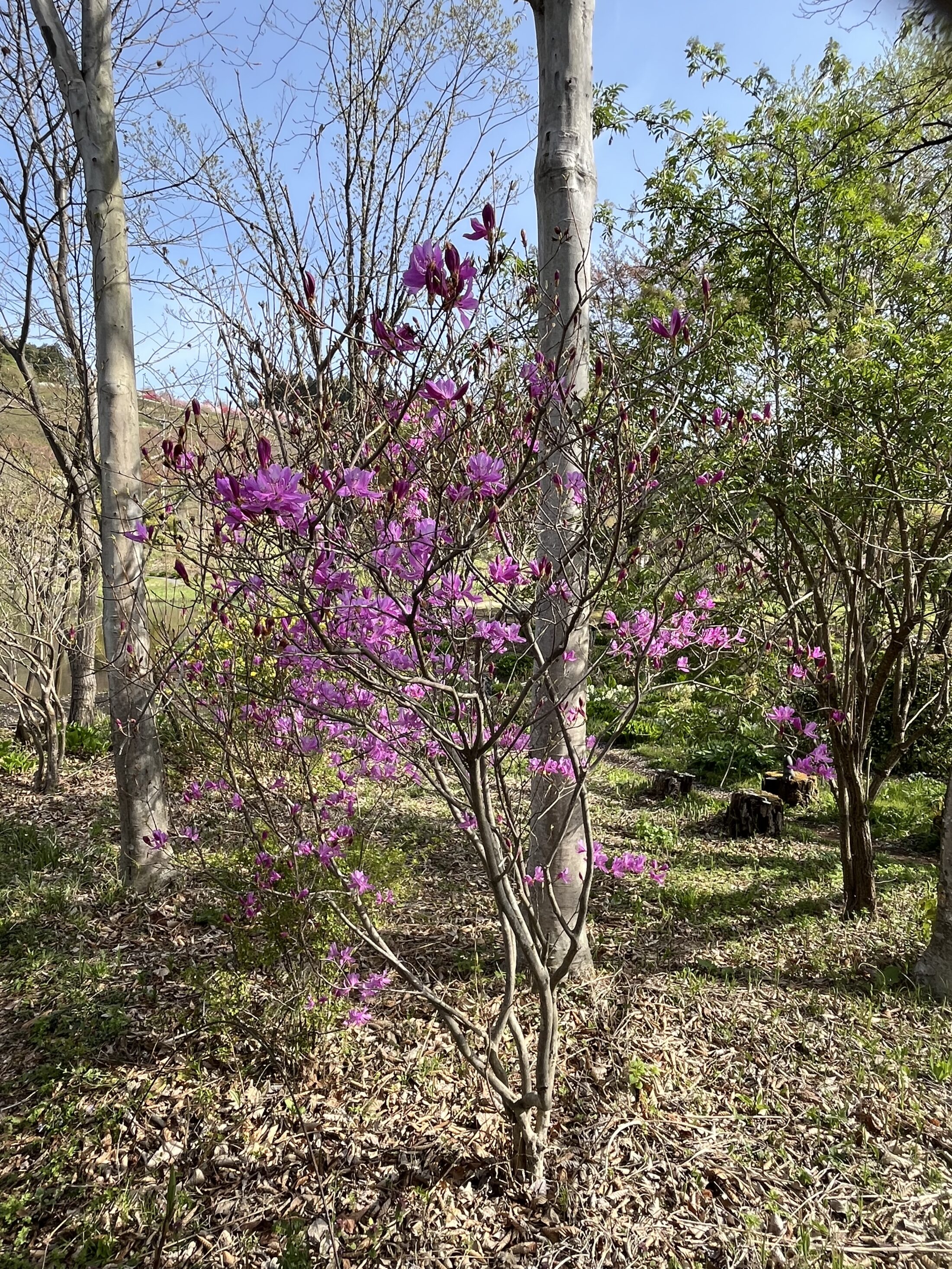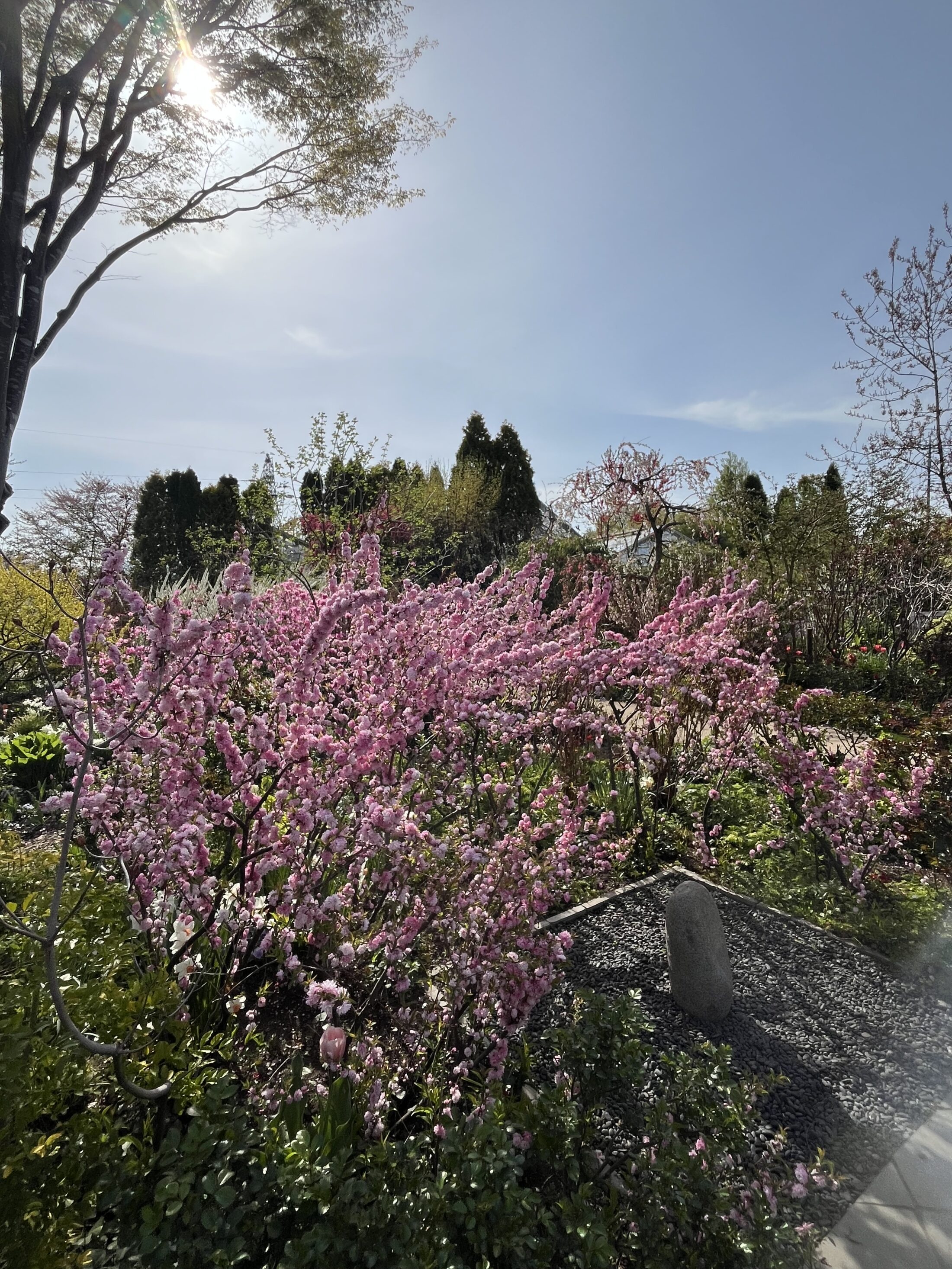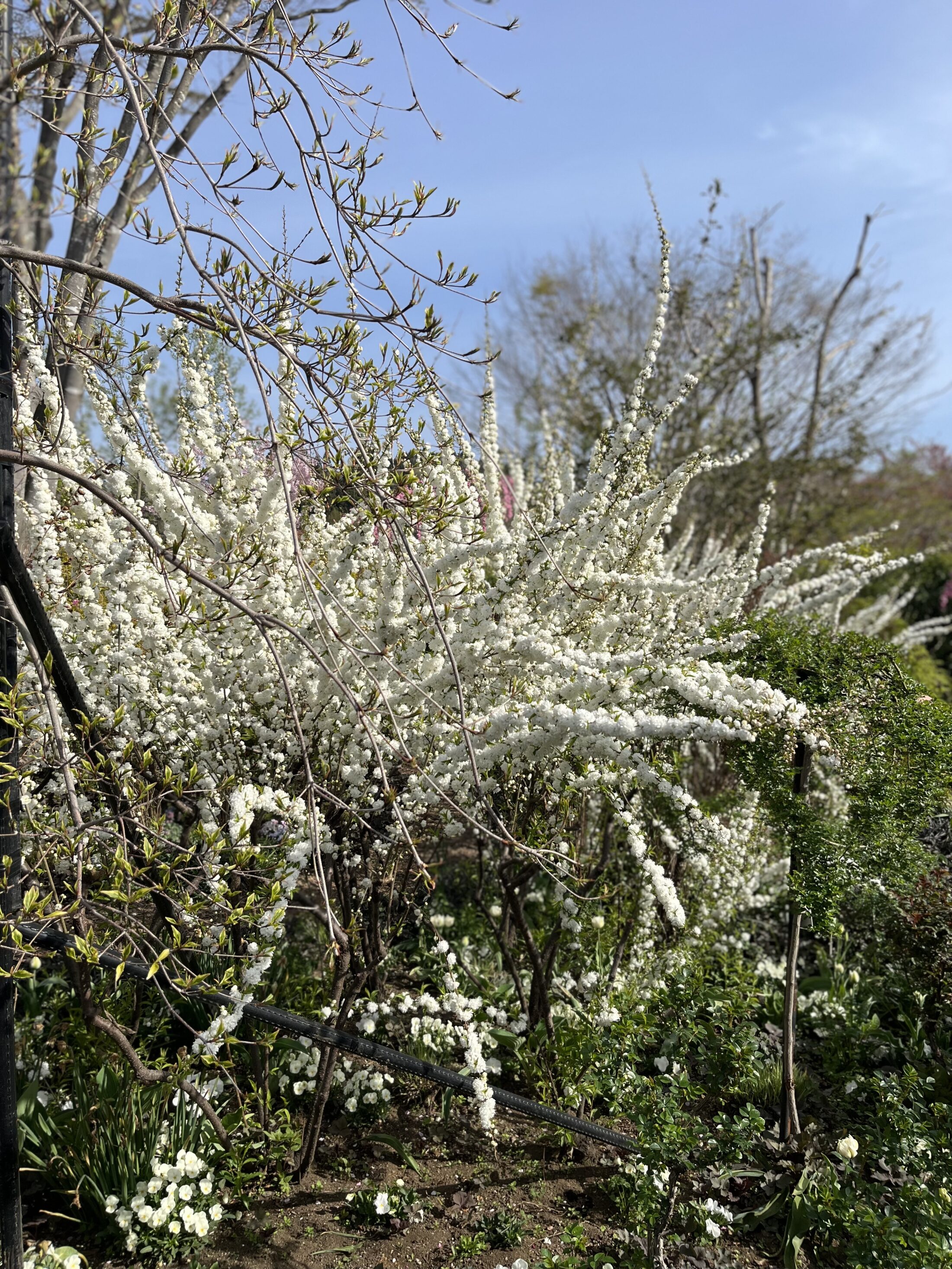 ローズガーデン内ではシャクナゲ、ニワザクラ、ハナカイドウなど花木が華やかに咲いています。