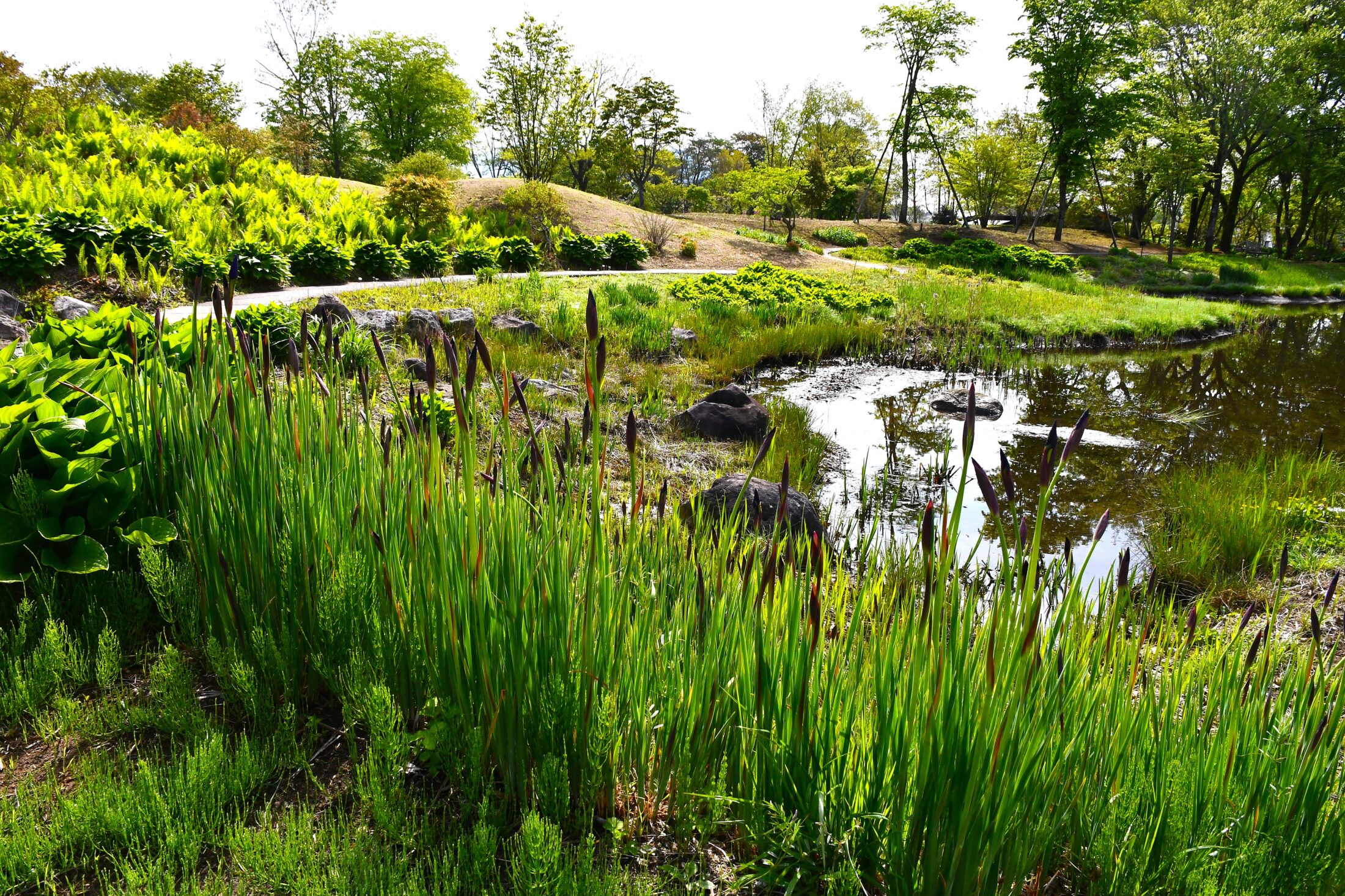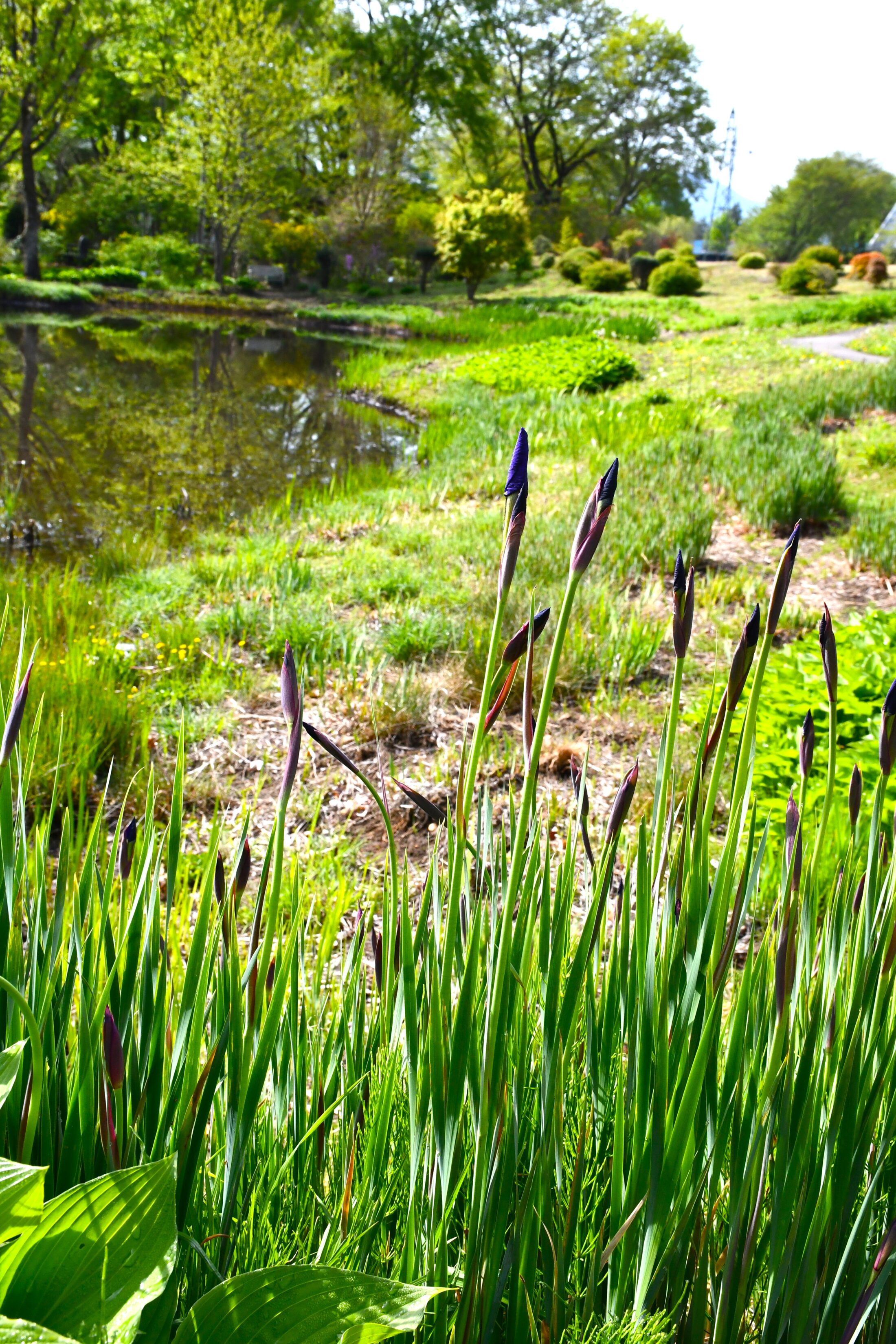 ノゾリ池のほとりでは、アヤメの蕾がだいぶん膨らんできました。