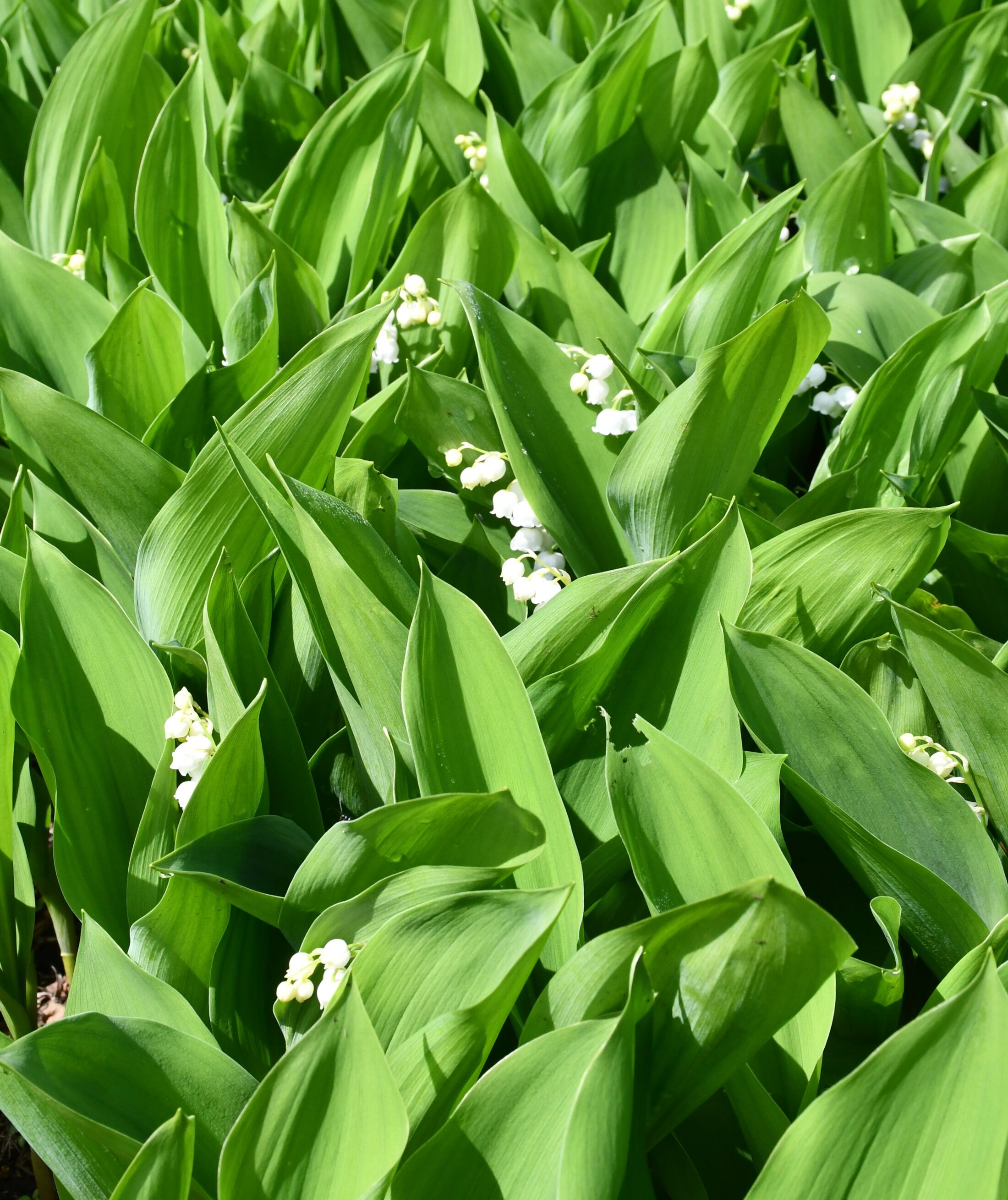 スズランは全体的に開花が進み、葉の陰からのぞく花の姿がとてもかわいらしく、お勧めです。