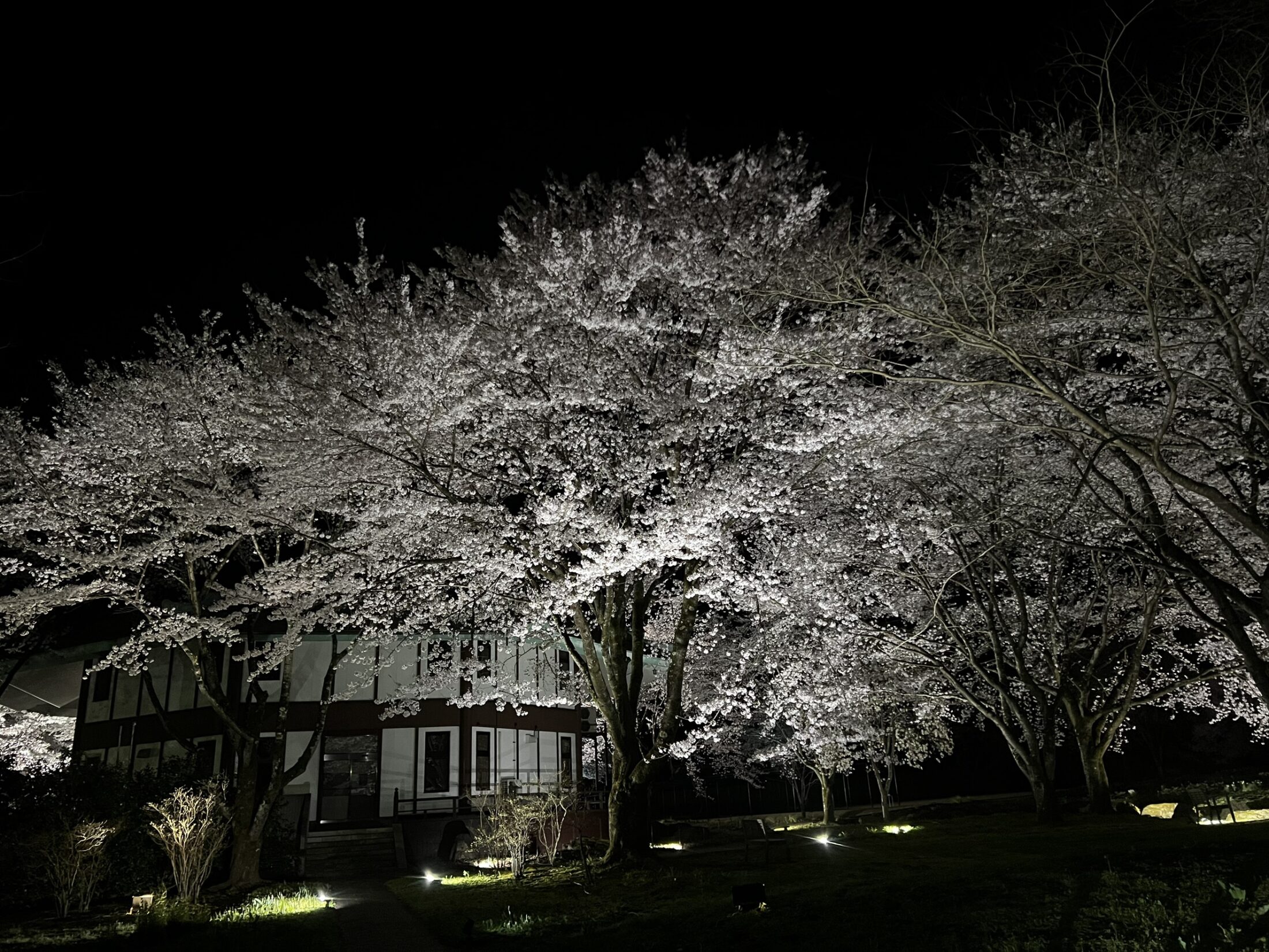 ソメイヨシノ満開です。今日から3日間夜桜ライトアップします。花桃も引き続きお楽しみいただけます。4月9日の状況